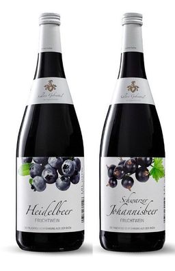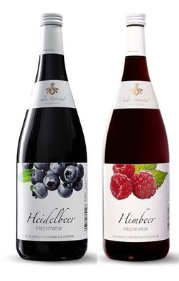 Geschenk 2x Fruchtwein Heidelbeer und Himbeer 1 Liter Flasche