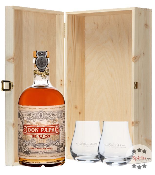 Geschenk-Set Don Papa Rum in Holzkiste (, 0,7 Liter) (40 % Vol., hide)
