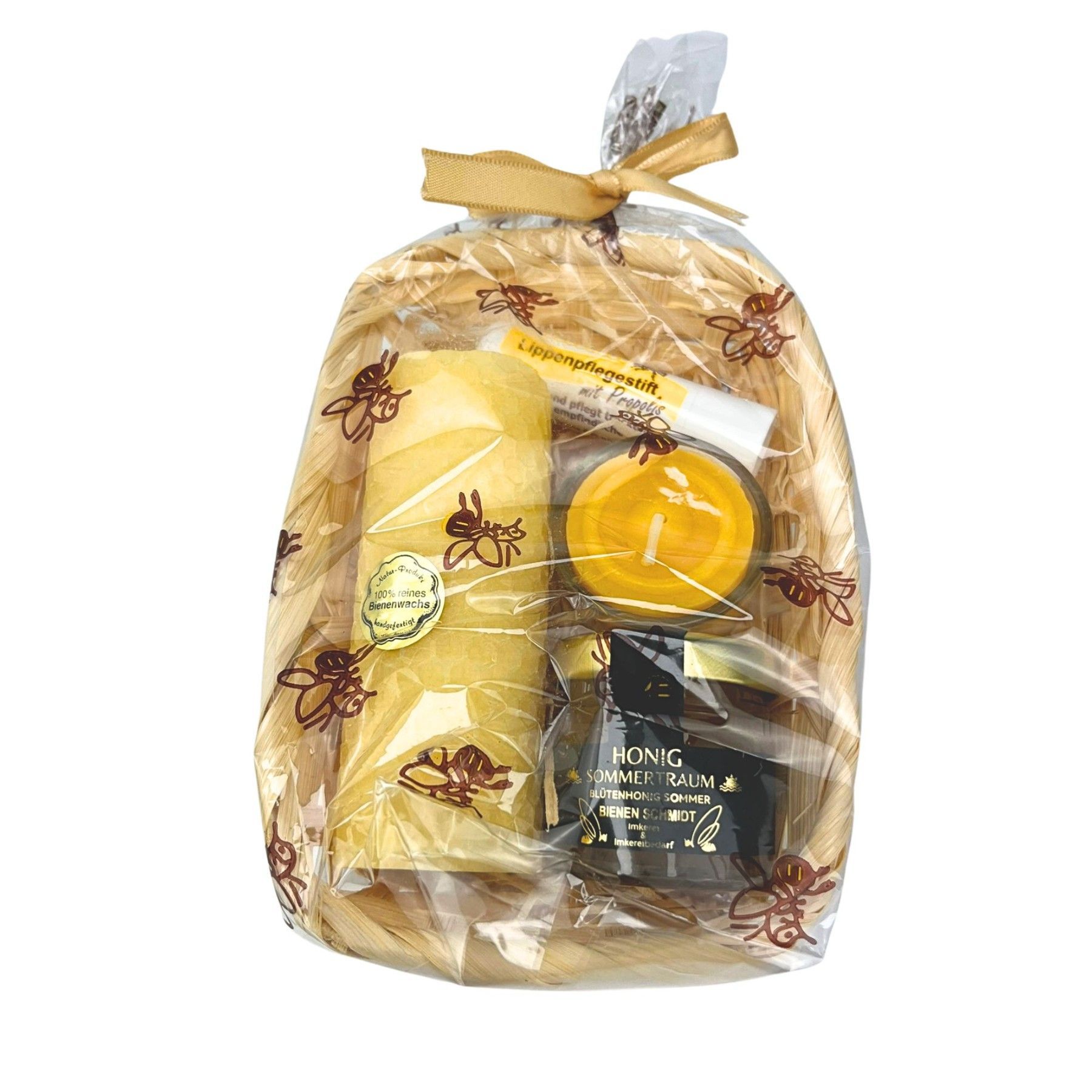 Geschenk-set mit Honig 50g, Lippenstift, Bienenwachskerze, Teelicht im Glas, 6-teilig