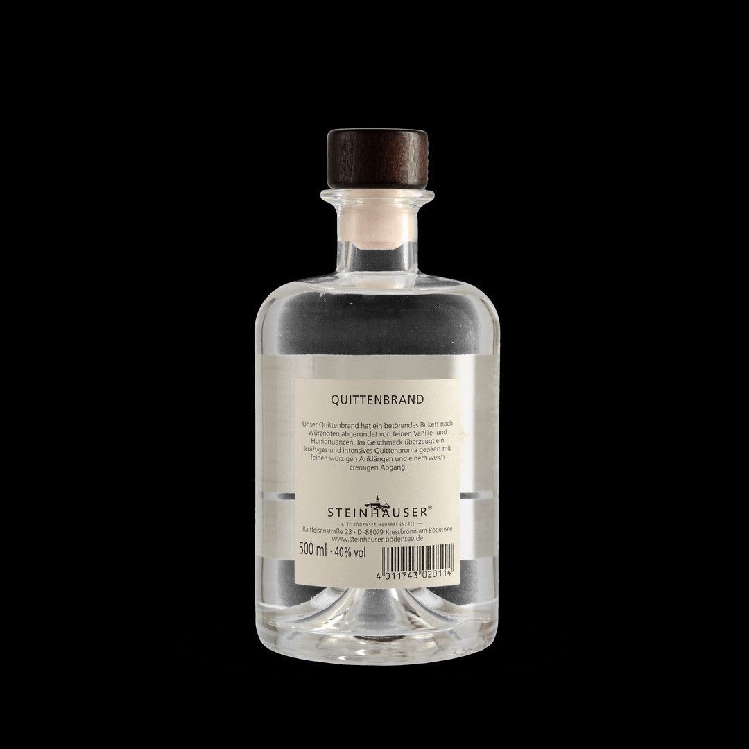 Steinhauser Bodensee Quittenbrand Die Mispel zählt mit seiner bedeutenden Geschichte zu den Spezialitäten der Edeldestillate. Mit der Ernte nach dem ersten Frost im Spätherbst wird die weiche Frucht gewonnen, welche an getrocknete Äpfel und Birnen mit einem Hauch Nuss erinnert. Alkoholgehalt Vol.-40% Gebindegröße 0,5 Liter