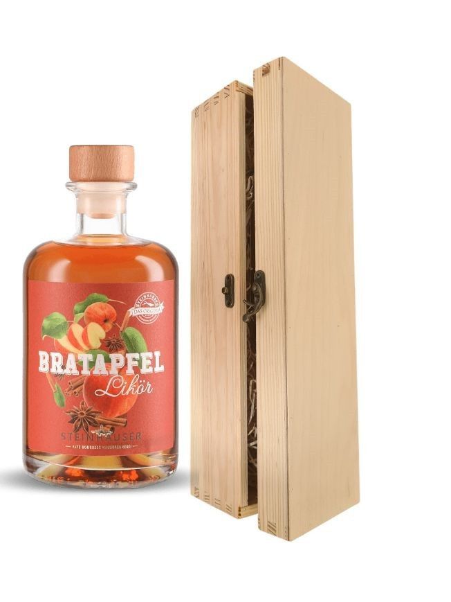 Geschenk Steinhauser Bratapfel Likör in einer Holzbox mit Verschluss