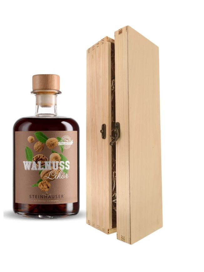 Geschenk Steinhauser Walnuss Likör in einer Holzbox mit Verschluss