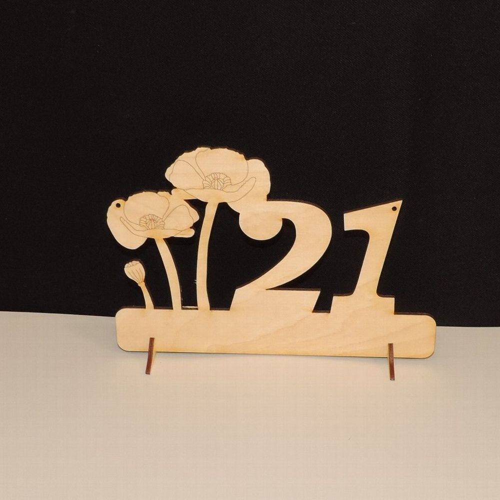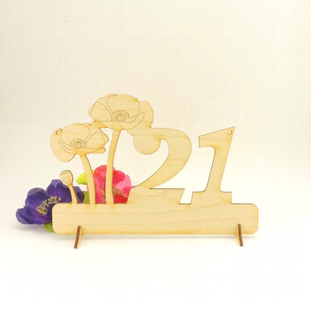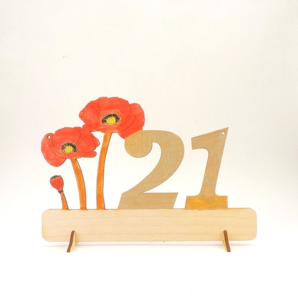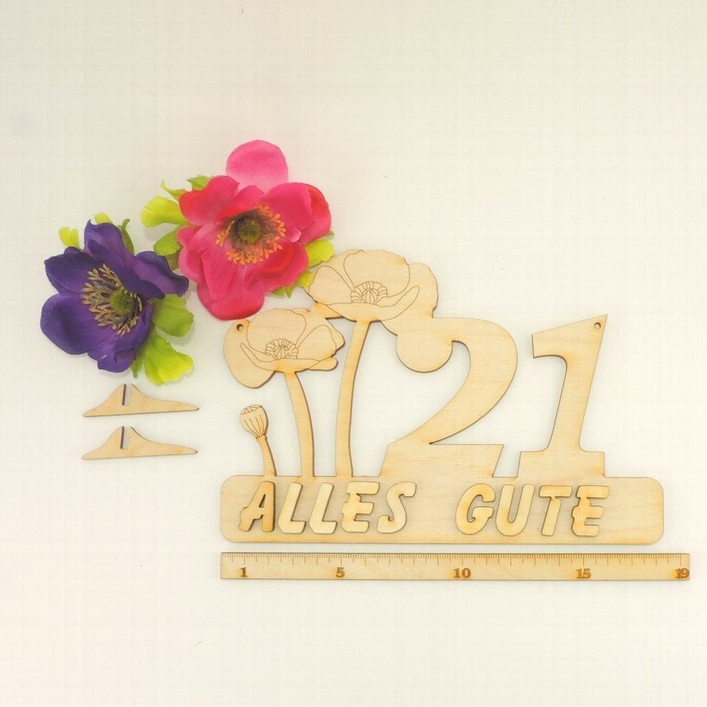 Mohnblume mit der Zahl 21 mit Katze oder Hund Unser Geschenkschild ist eine tolle und gern gesehene Idee für jeden runden Geburtstag! Das Schild kann aufgehängt oder hingestellt werden, Füßchen werden mitgeliefert. Es ist ca. 185mm breit und hat eine Höhe von ca. 122mm. Material: stabiles 3mm starke