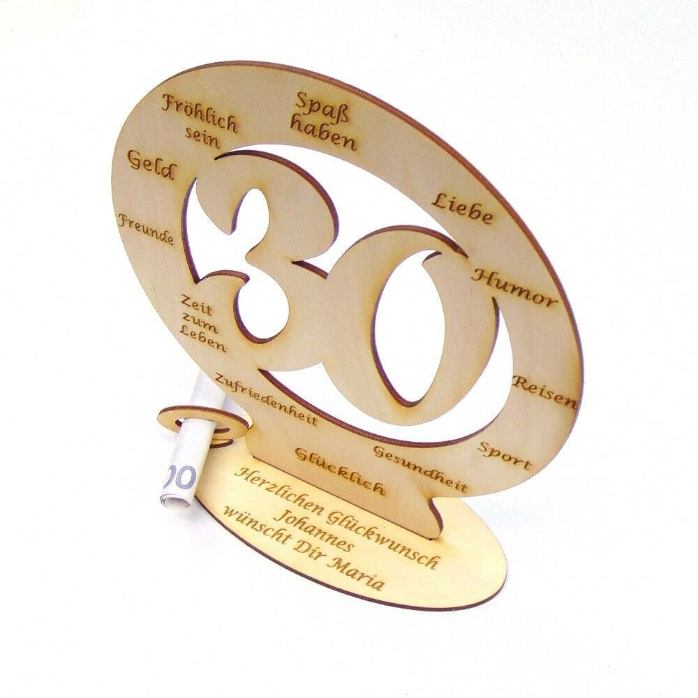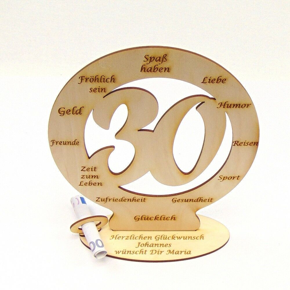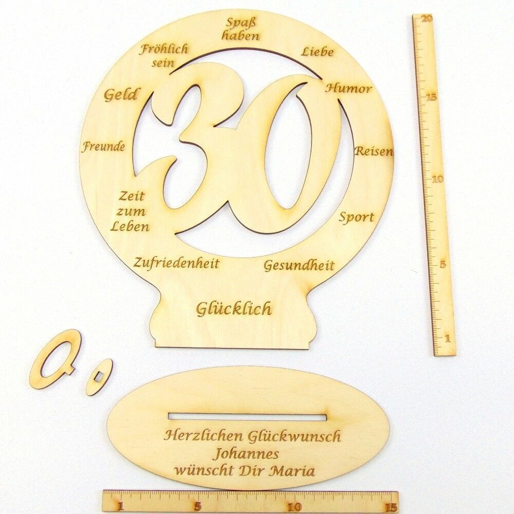 Geschenk zum 30. Geburtstag, Glückwünsche auf Holz, Rund zum Anhängen