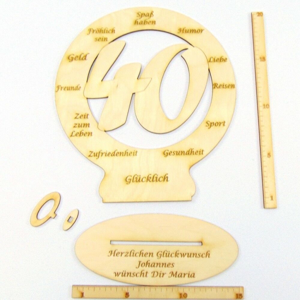 Geschenk zum 40. Geburtstag, Glückwünsche auf Holz für Ihre Liebsten