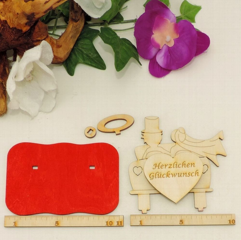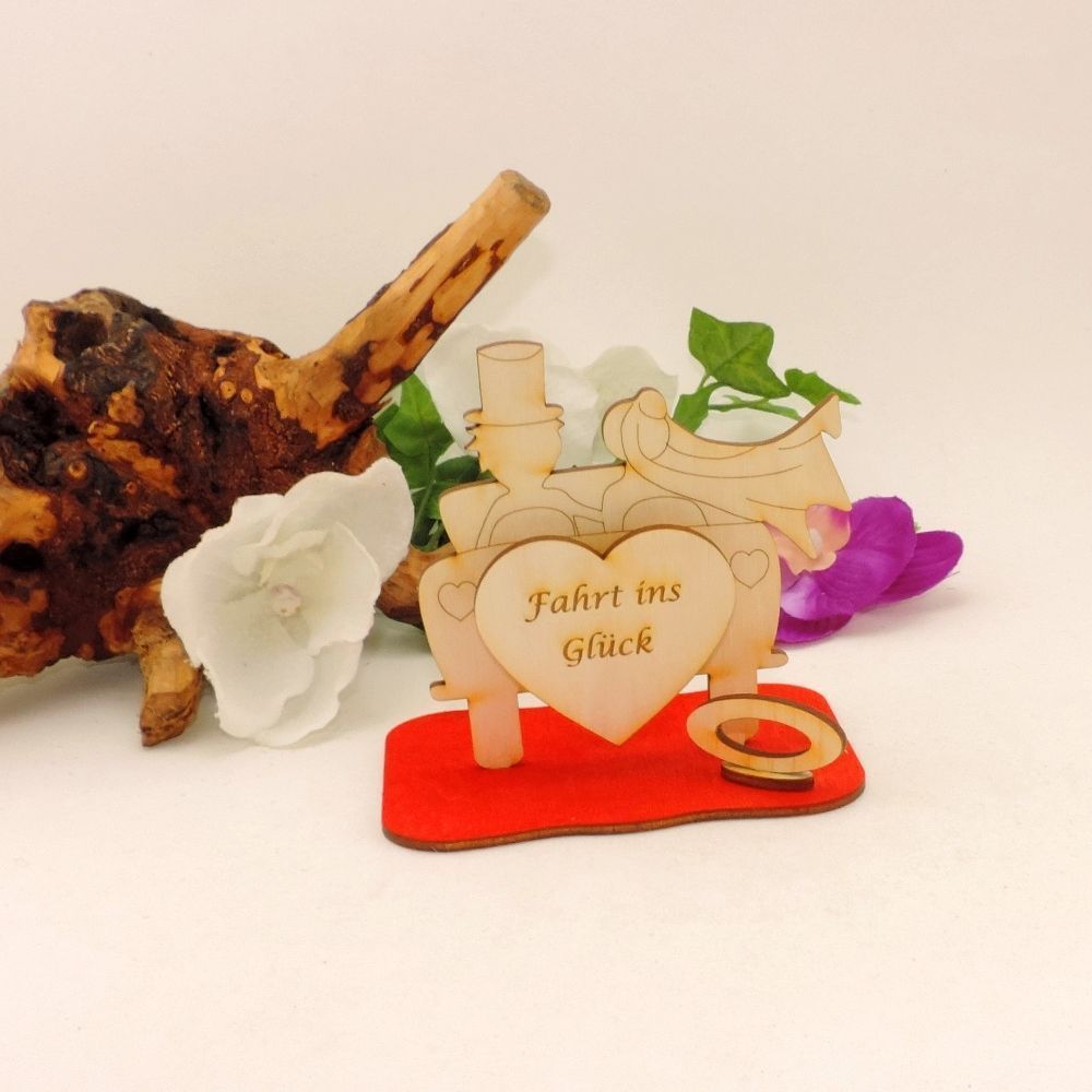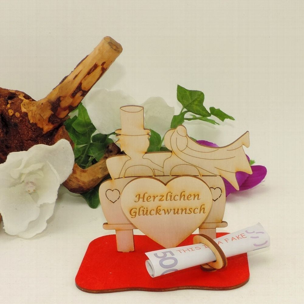 Geschenk zur Hochzeit Auto mit Herz graviert Holz Flitterwochen Geldgeschenk