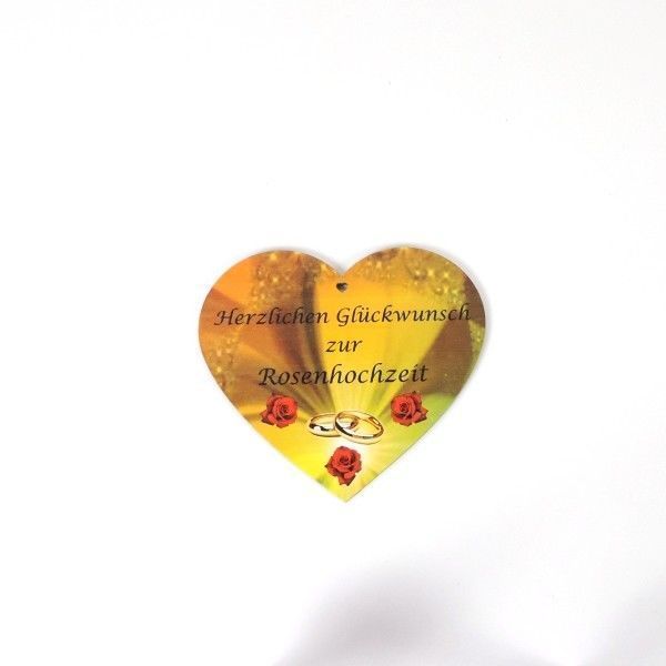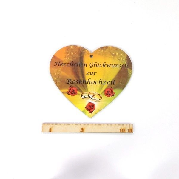 Farbiges Herz aus Holz bedruckt mit Glückwunsch zur Rosenhochzeit Mit diesen tollen Herz, mit bunten Bilderdruck bedruckt und Ihren Glückwünschen haben Sie ein schönes Geschenk. Passend zu einem festlichen Anlaß wie ein Hochzeitsjubiläum - das Herz wird der Hit! ... und die Beschenkten sicherlich er