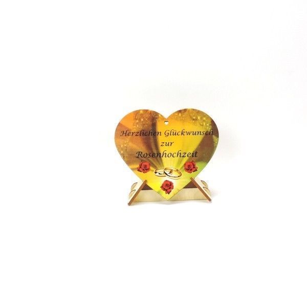 Geschenk zur Rosenhochzeit Holzherz mit Farbdruck Jubiläum Herz Geschenk