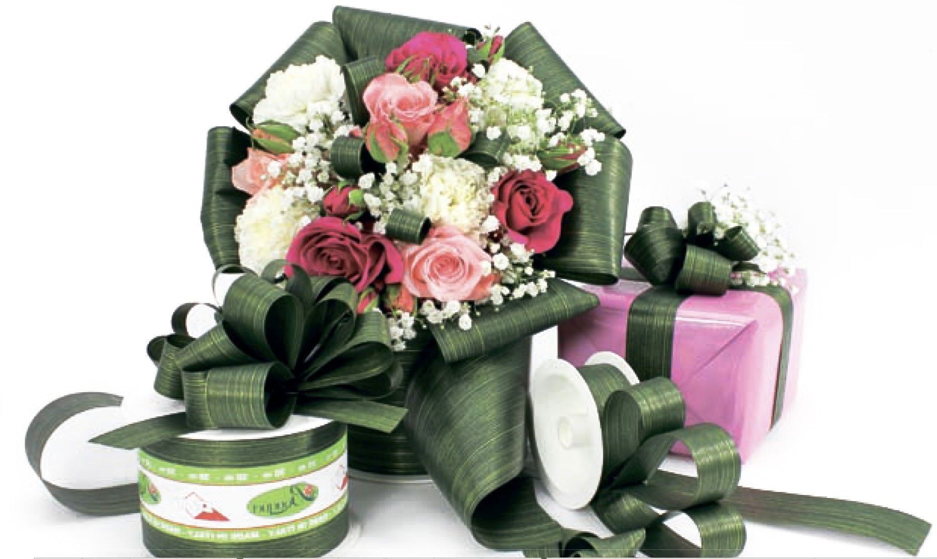 Geschenkband in Blätteroptik gestreift 75mm x 30m Rolle Blattgrün