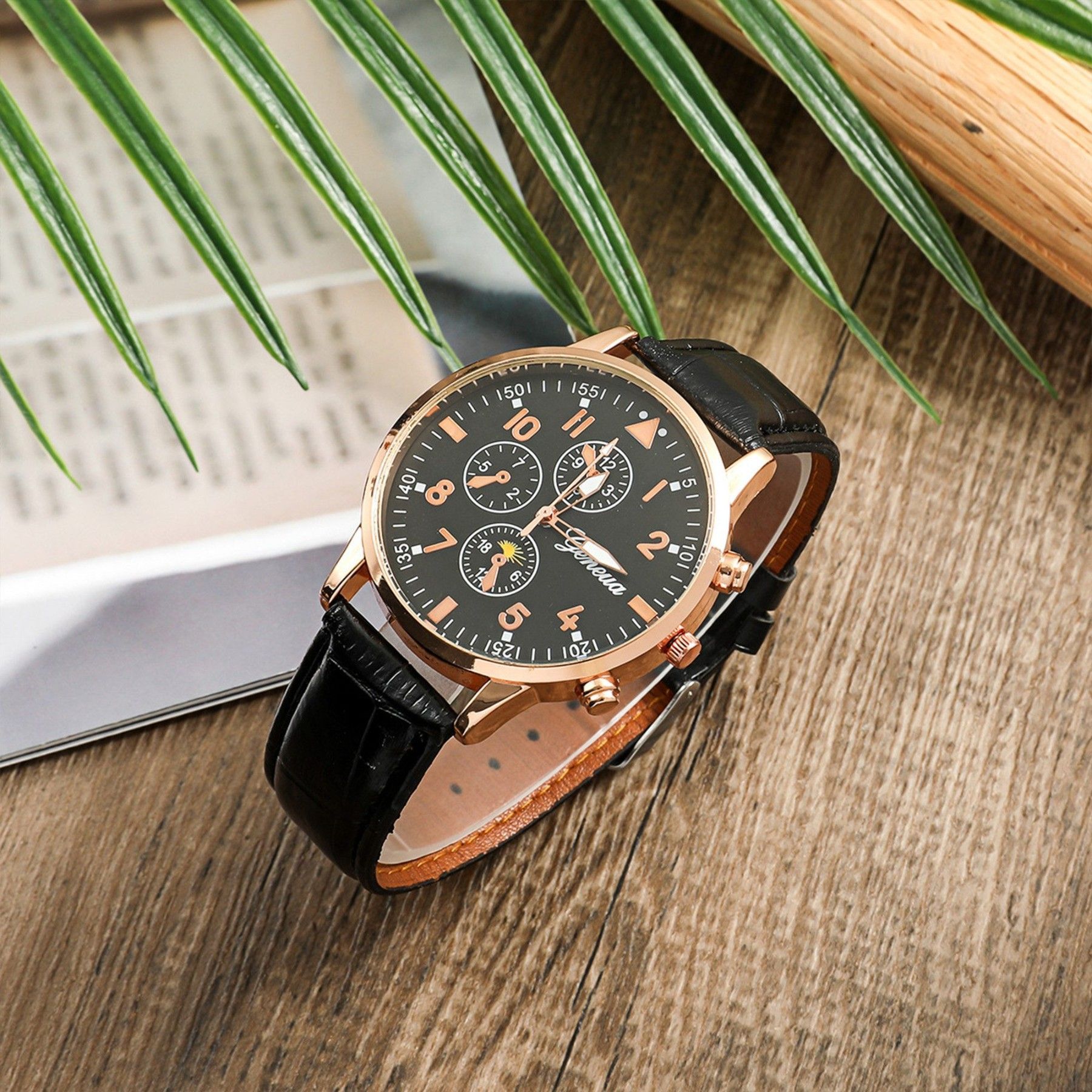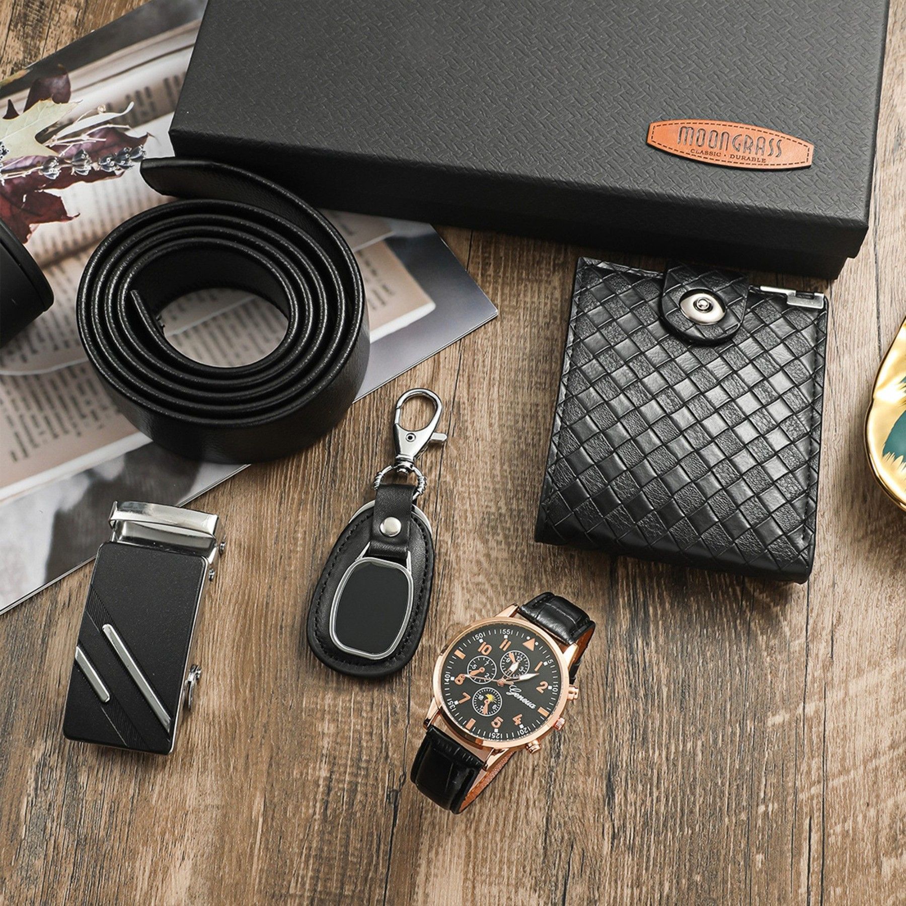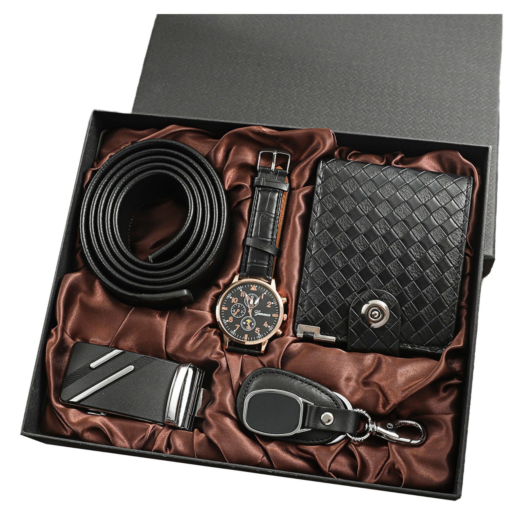 Geschenkbox 4PCS Männer Gürtel Quarzuhr Geldbörse Schlüsselanhänger