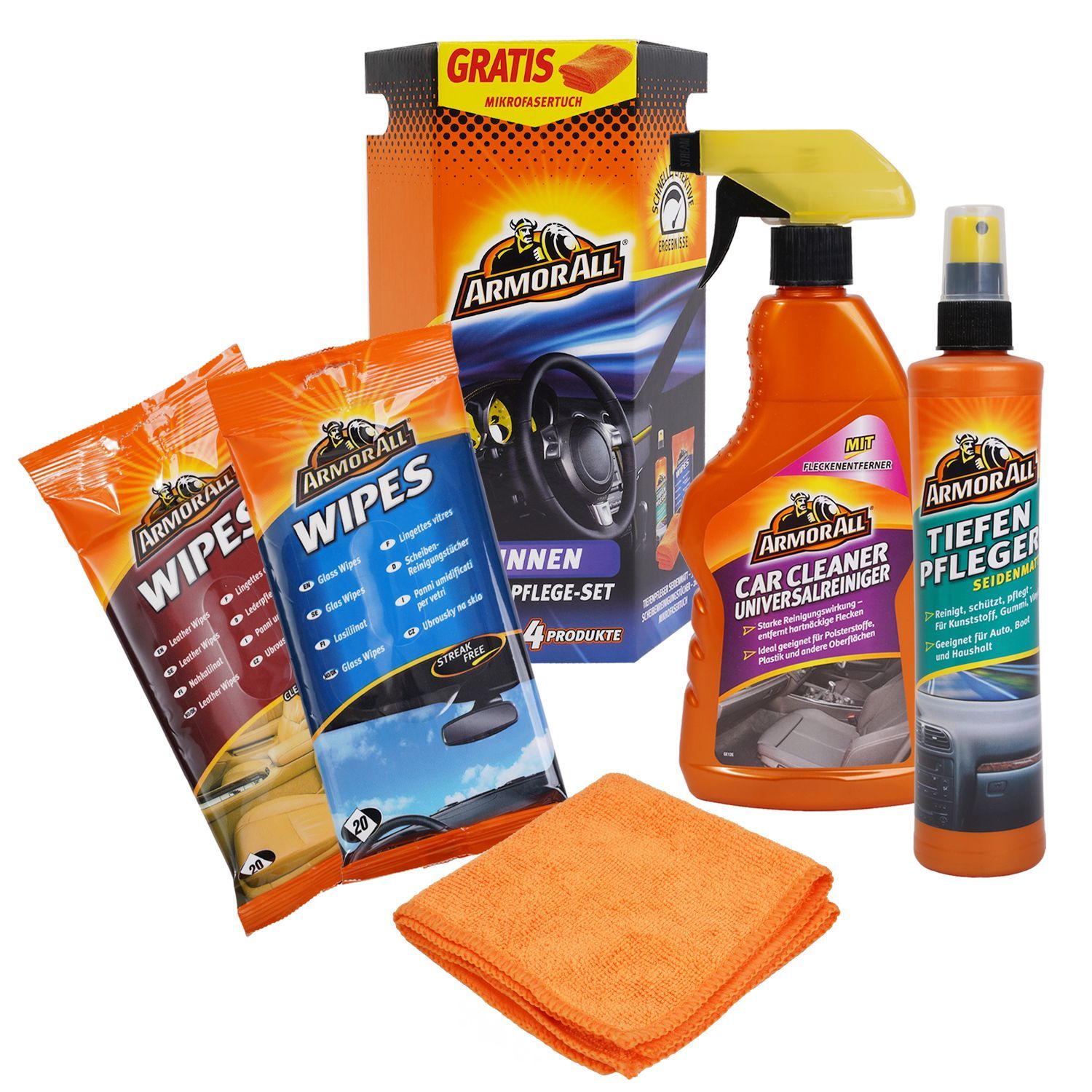 Geschenkbox Innenraumpflege 4-teilig + Mikrofasertuch