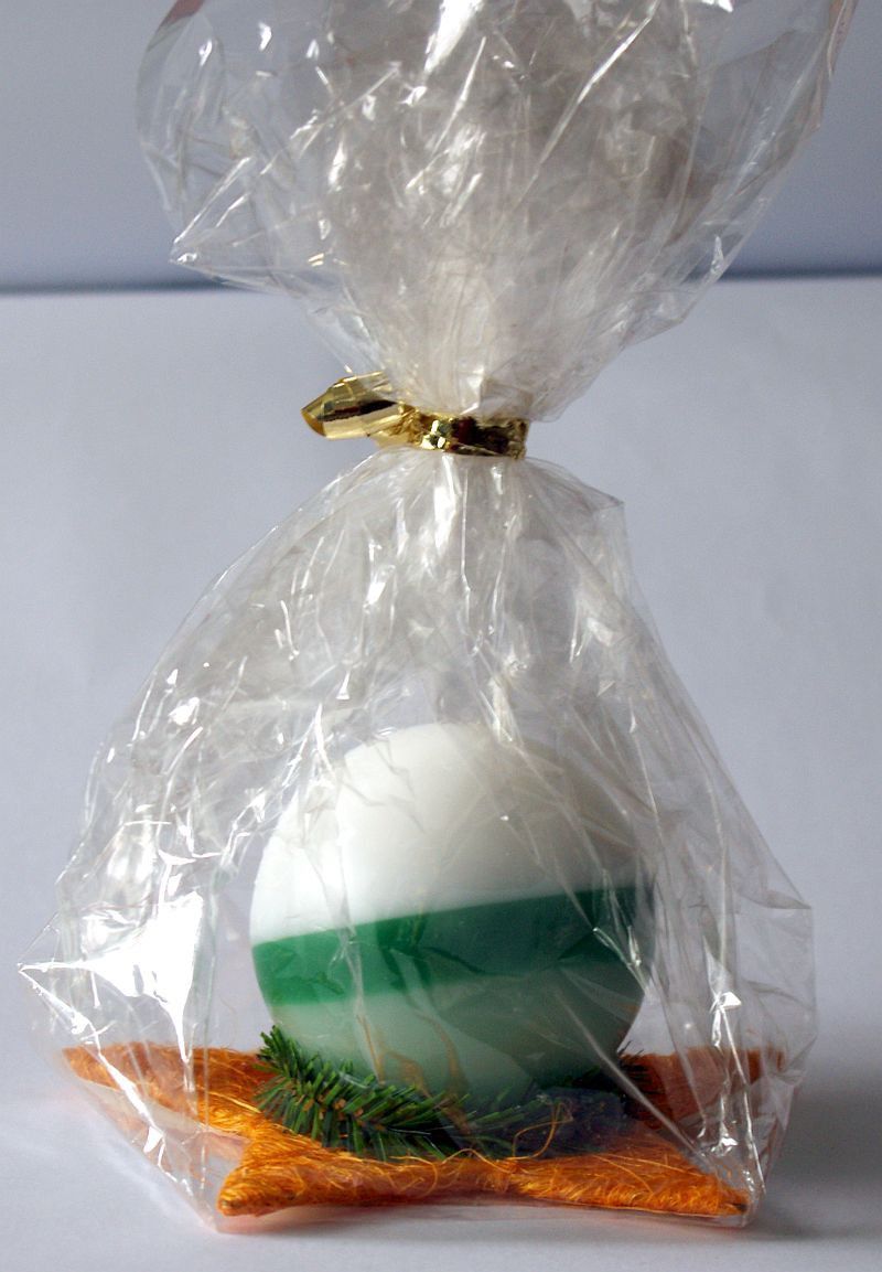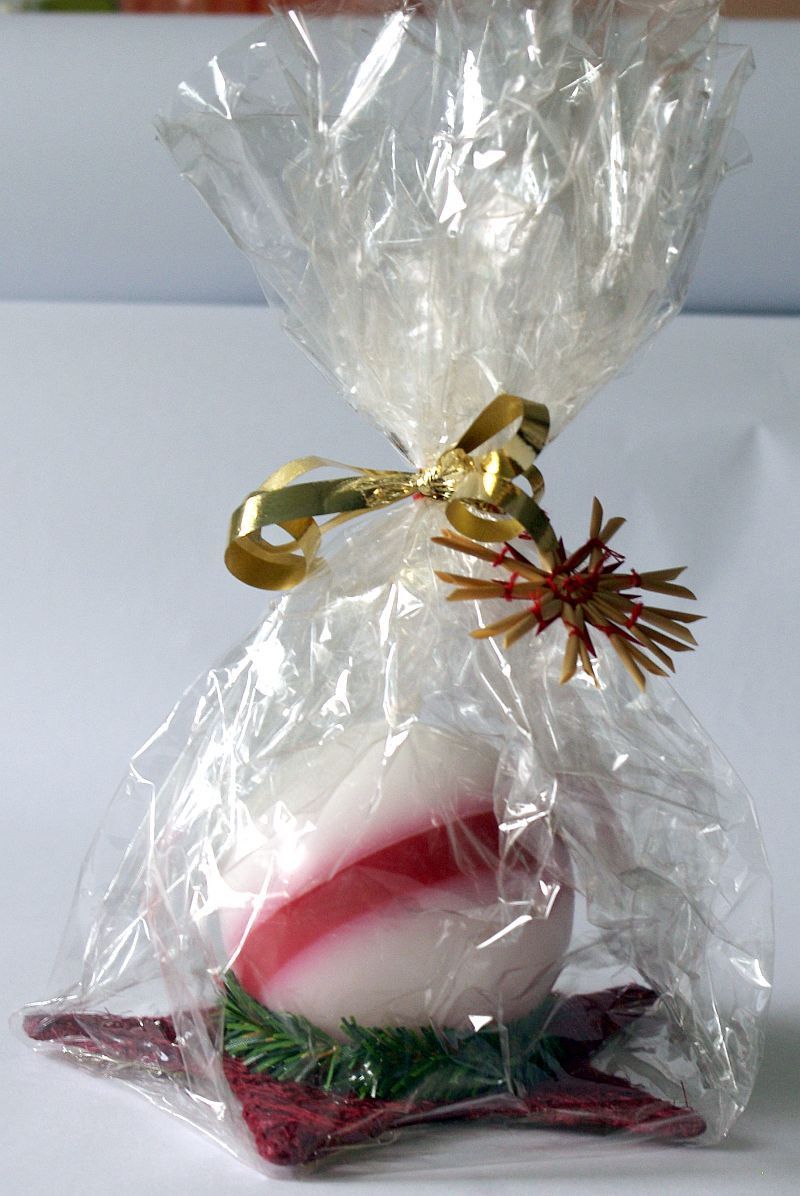 Geschenke-Set handgefertigte Kugelkerze auf Sisal-Stern