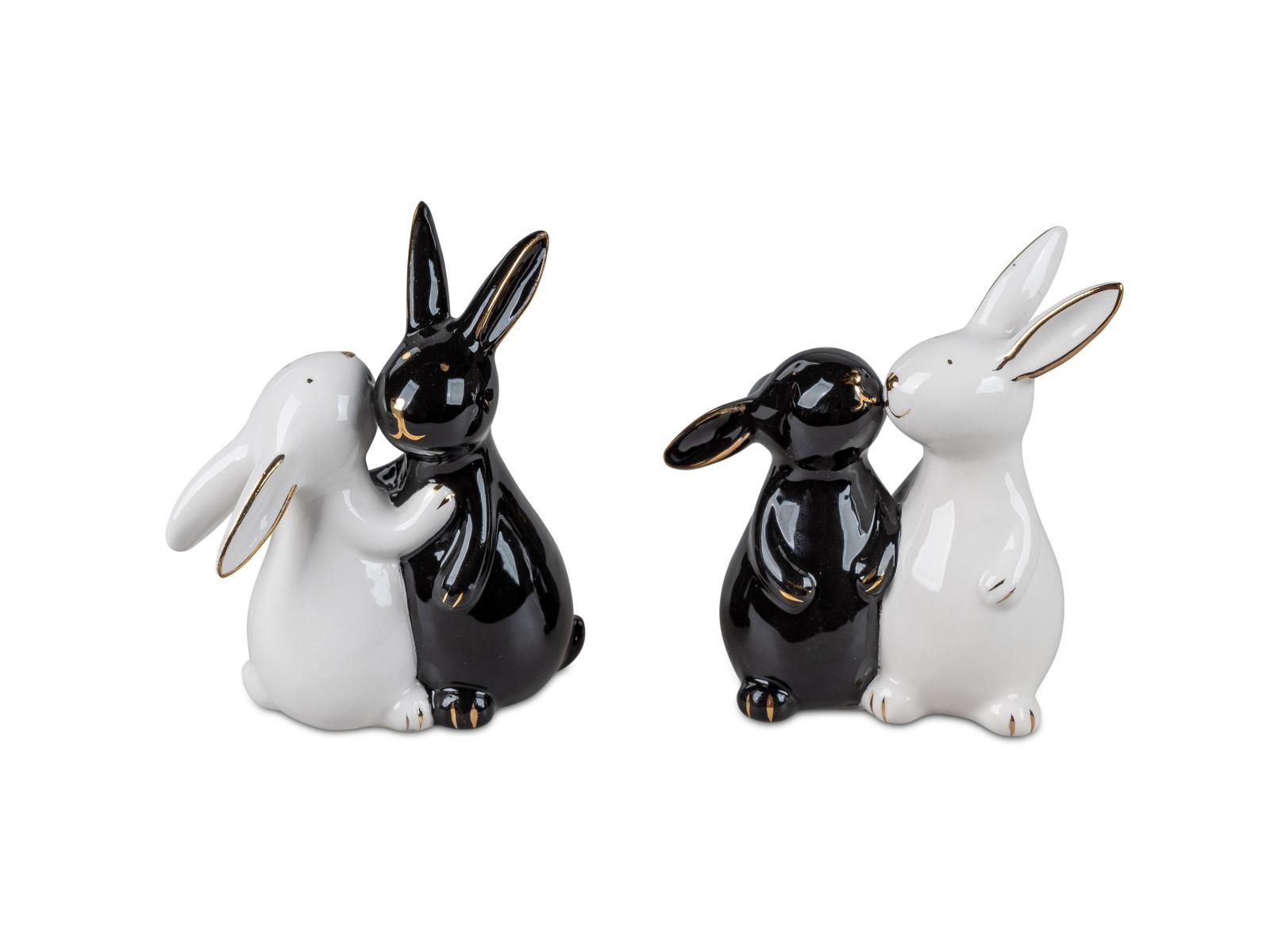 Geschenke und Dekoration zu Ostern- 1 Stueck von 2 lustiges Hasenpaar 10cm schwarz/we