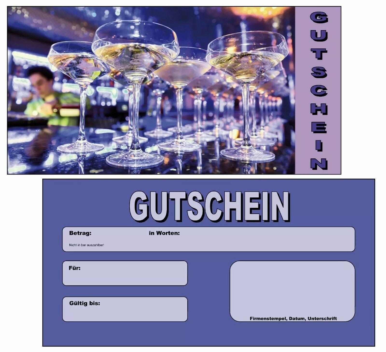 Geschenkgutscheine Gutscheinkarten Gutscheine Gastronomie Café Restaurant Bar Sekt
