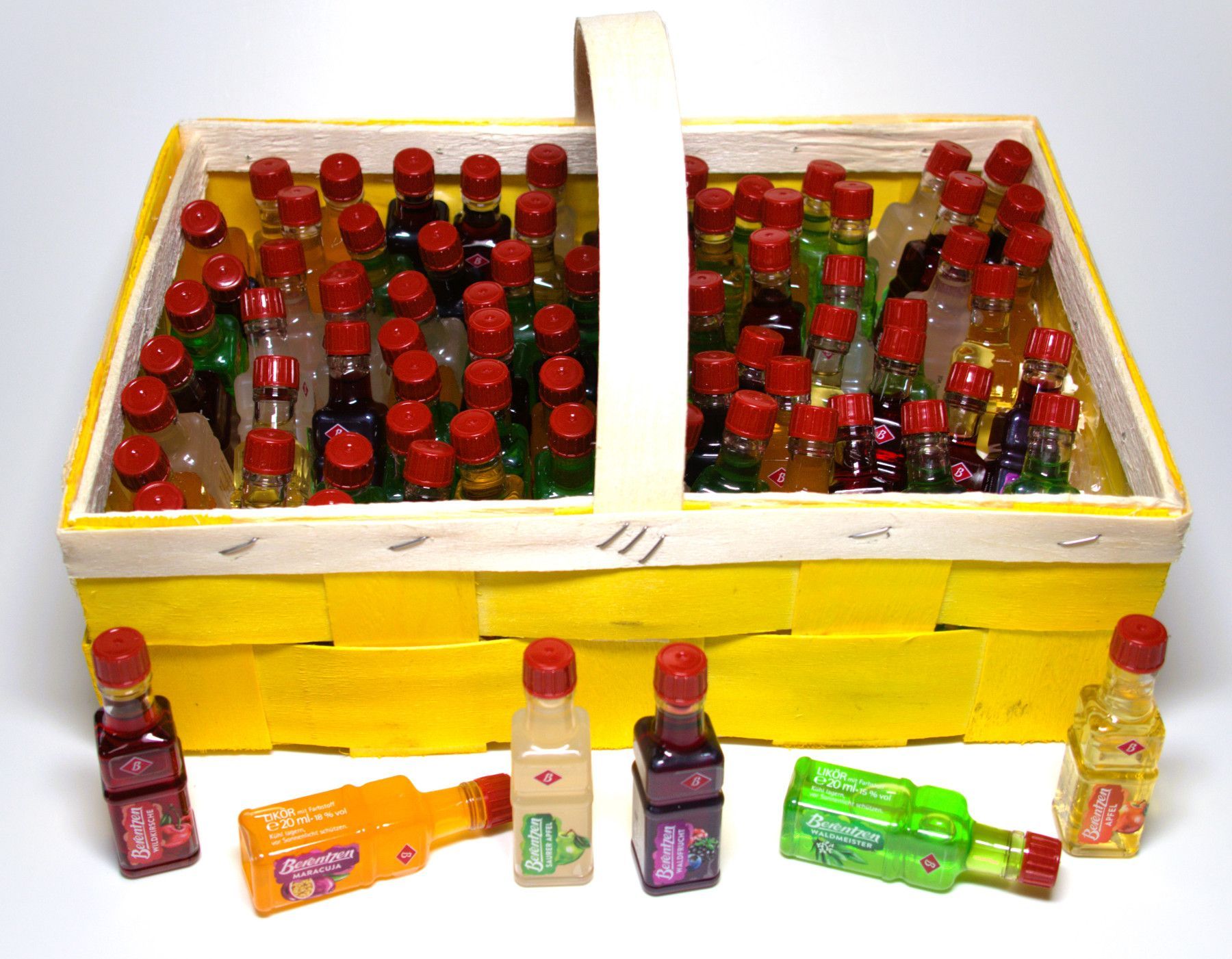 Berentzen Geschenkkorb mit 81 x 0,02 l PET Berentzen Mini-Flaschen == Gelb
