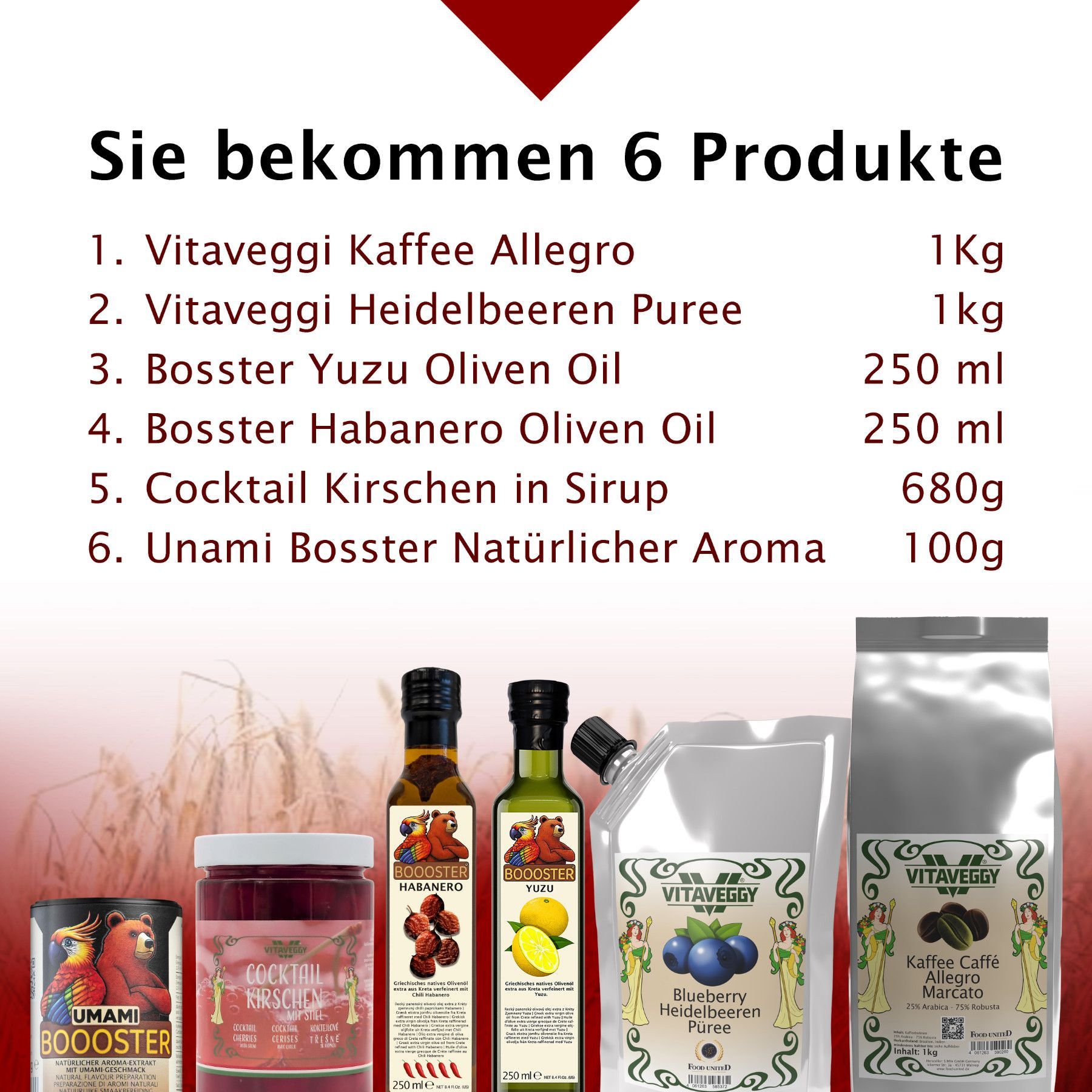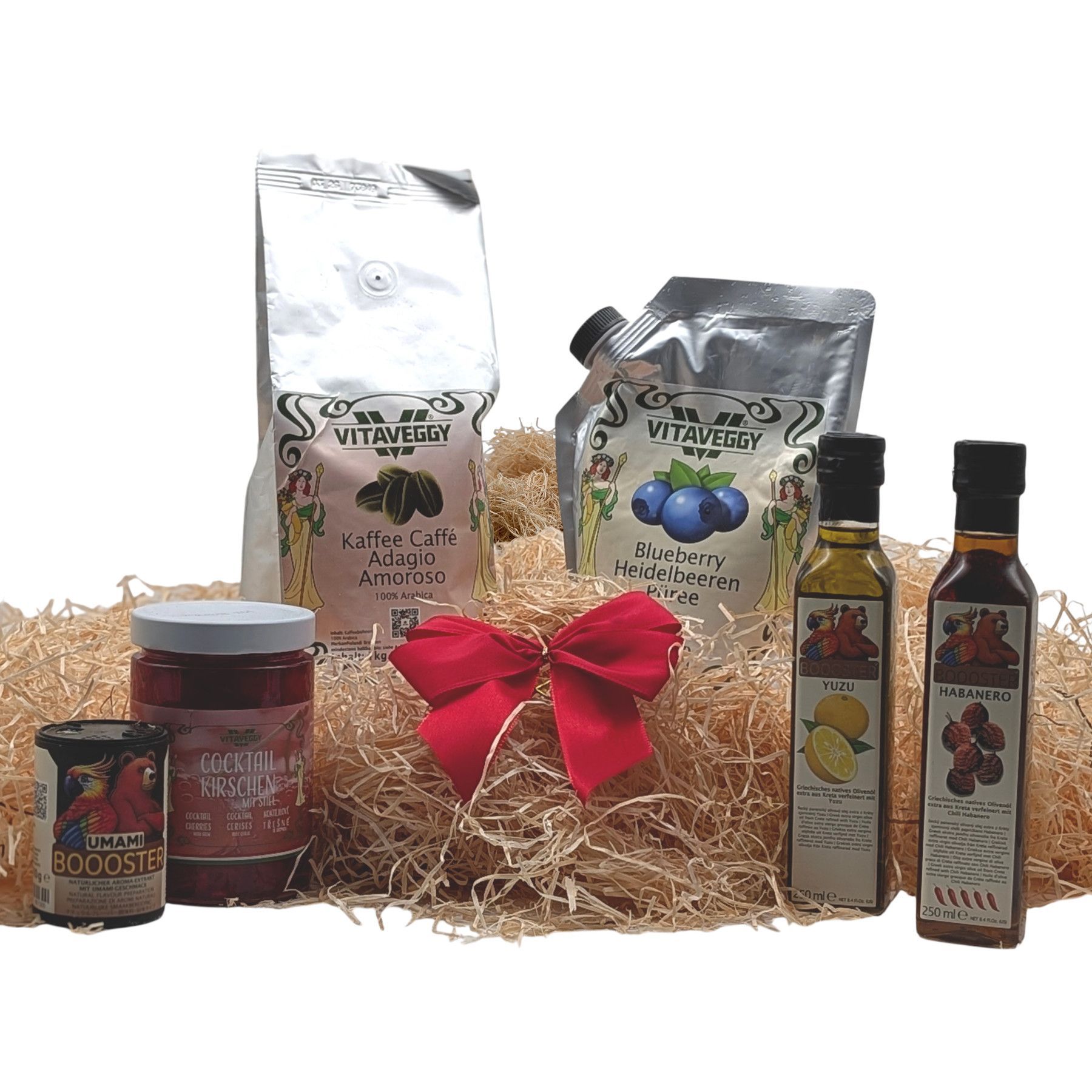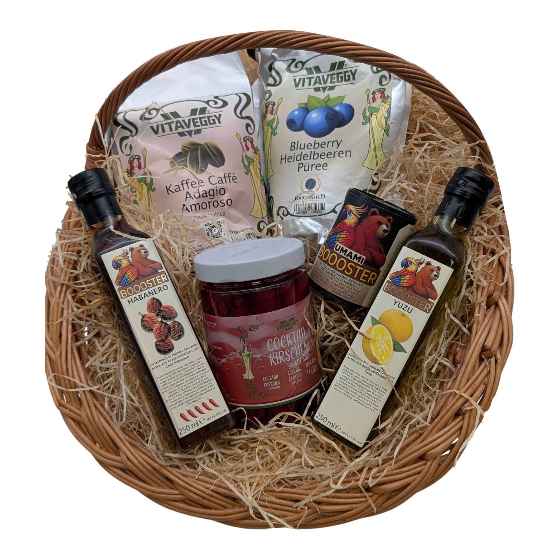 Geschenkkorb mit Cocktail Kirschen, Umami Boooster & 100% Arabica Kaffeebohnen