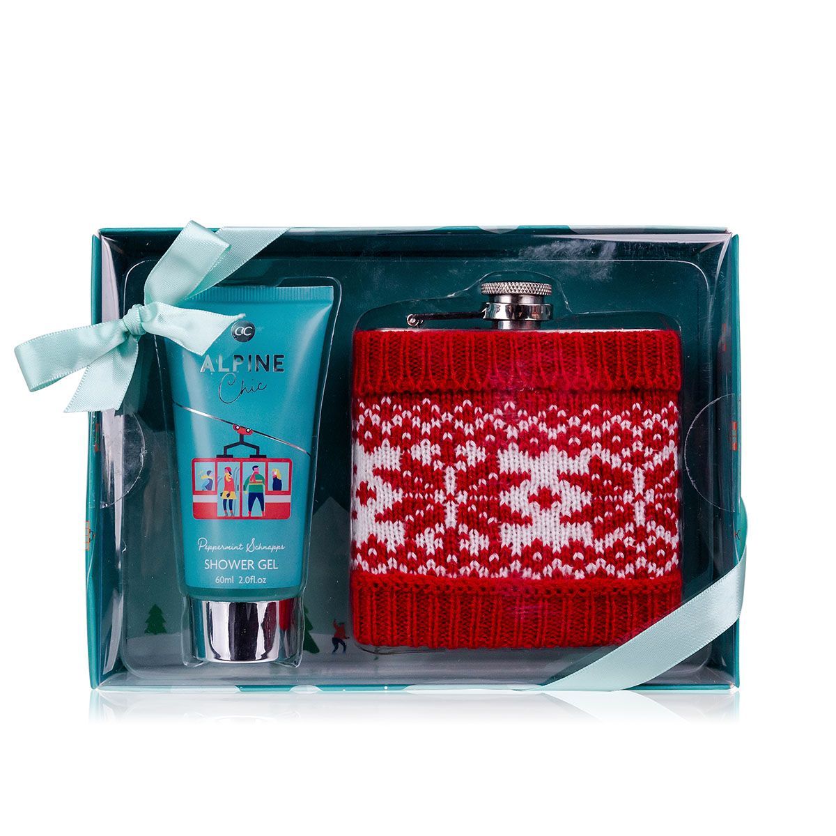 Geschenkset ALPINE CHIC Duschgel, Flachmann mit Stoffüberzug