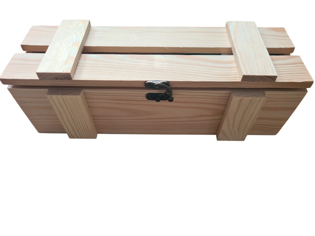 Geschenkset Holzlattenbox mit Verschluss dazu Grüner Veltliner Sekt 0,75 Liter BRUT
