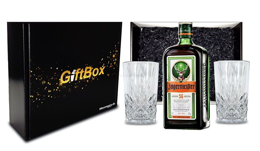 Jägermeister Geschenkset - Jägermeister Kräuterlikör 0,7l 700ml (35% Vol) + 2x Longdrink Glä