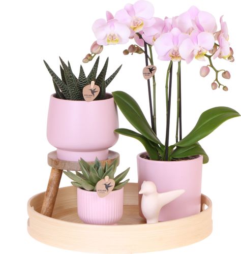 Geschenkset 'Pink vibes' | Grünpflanze mit rosa Phalaenopsis-Orchidee in Simplici