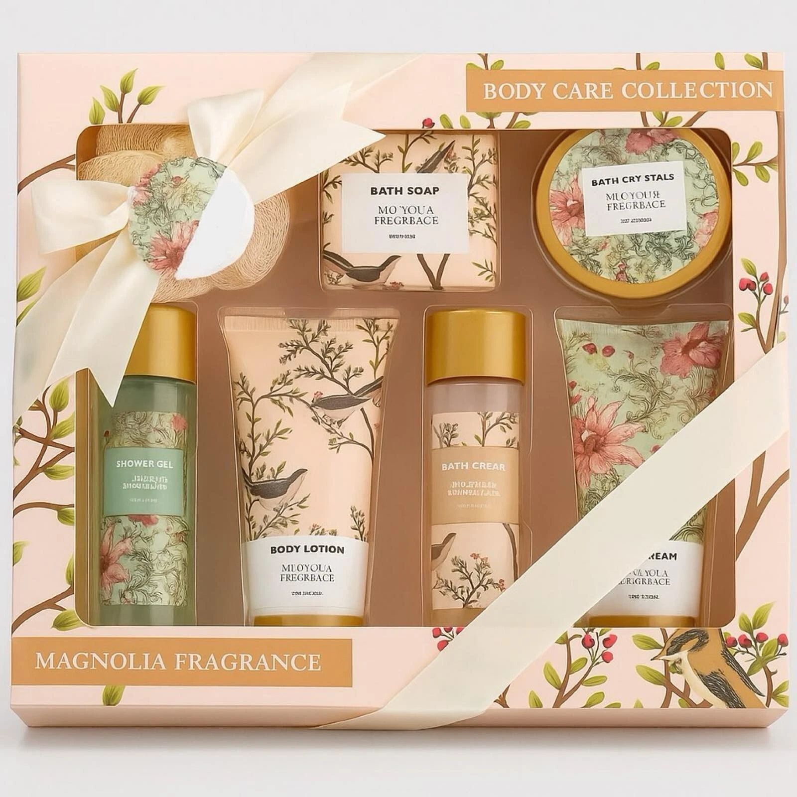 Geschenkset Sandelholz Rose Duschgel, Bodylotion, Badecreme und Duschpuff