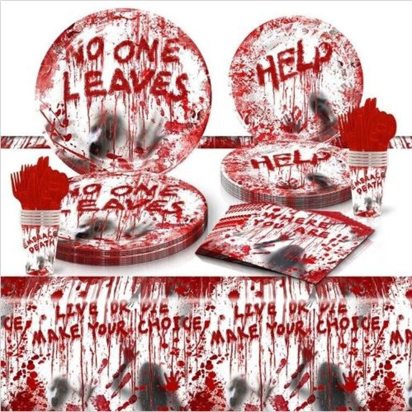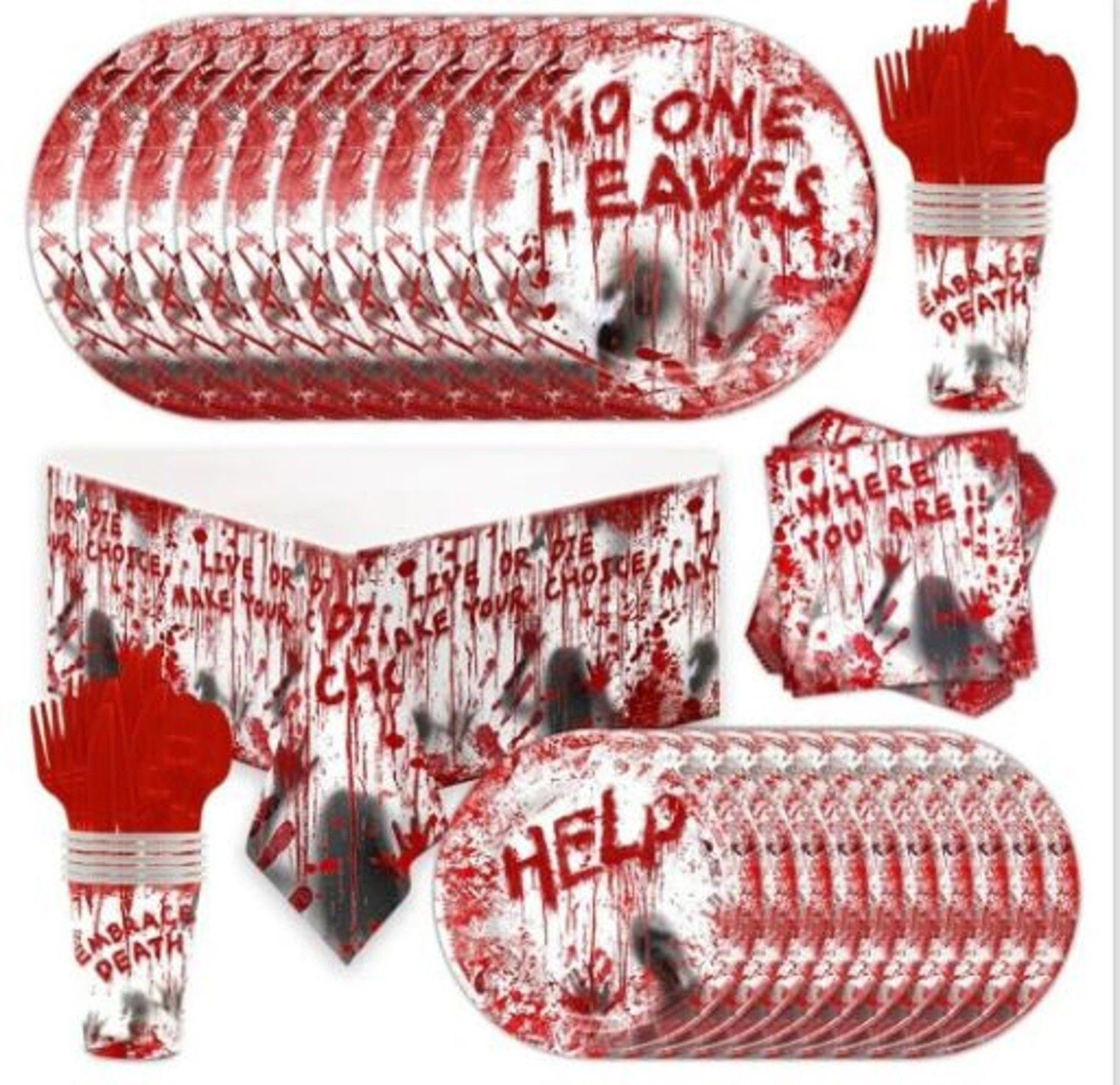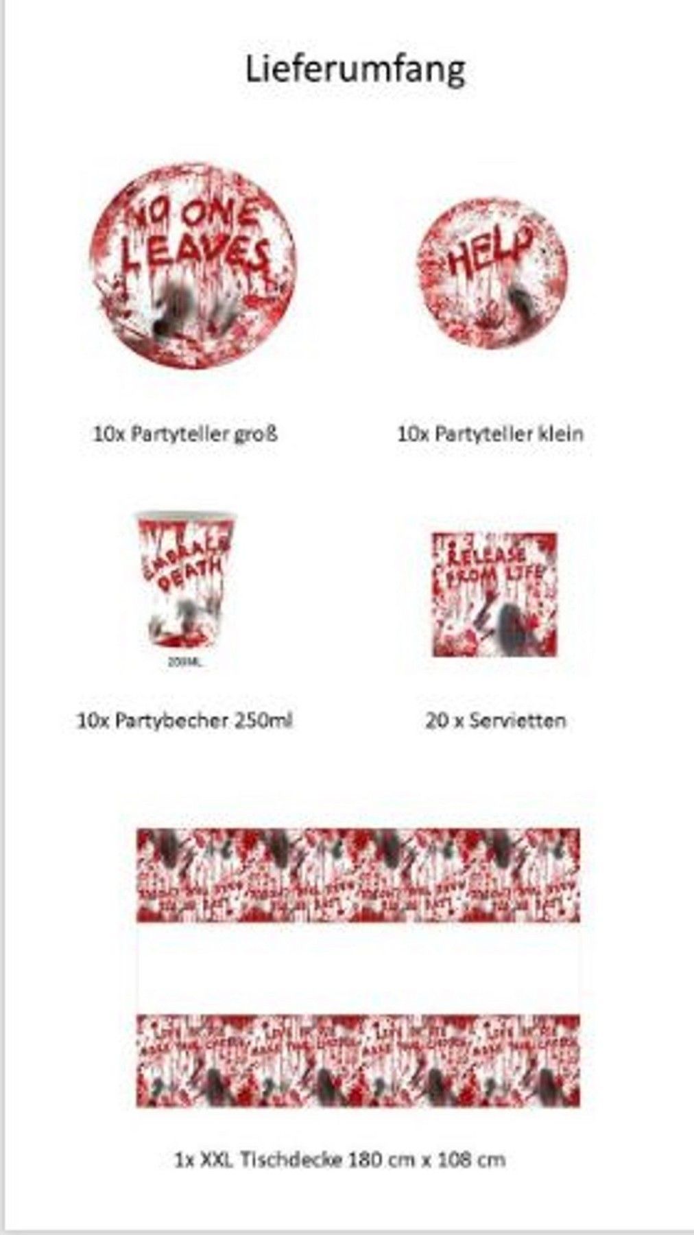 Geschirr-Set Halloween Party Deko Set 10 Gäste Teller gruselig Horror Krimidinner