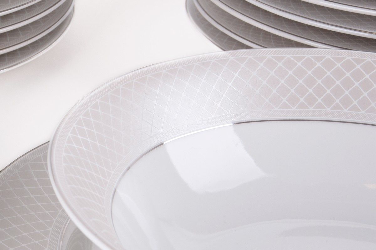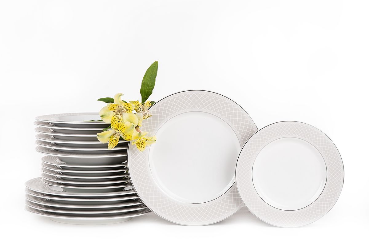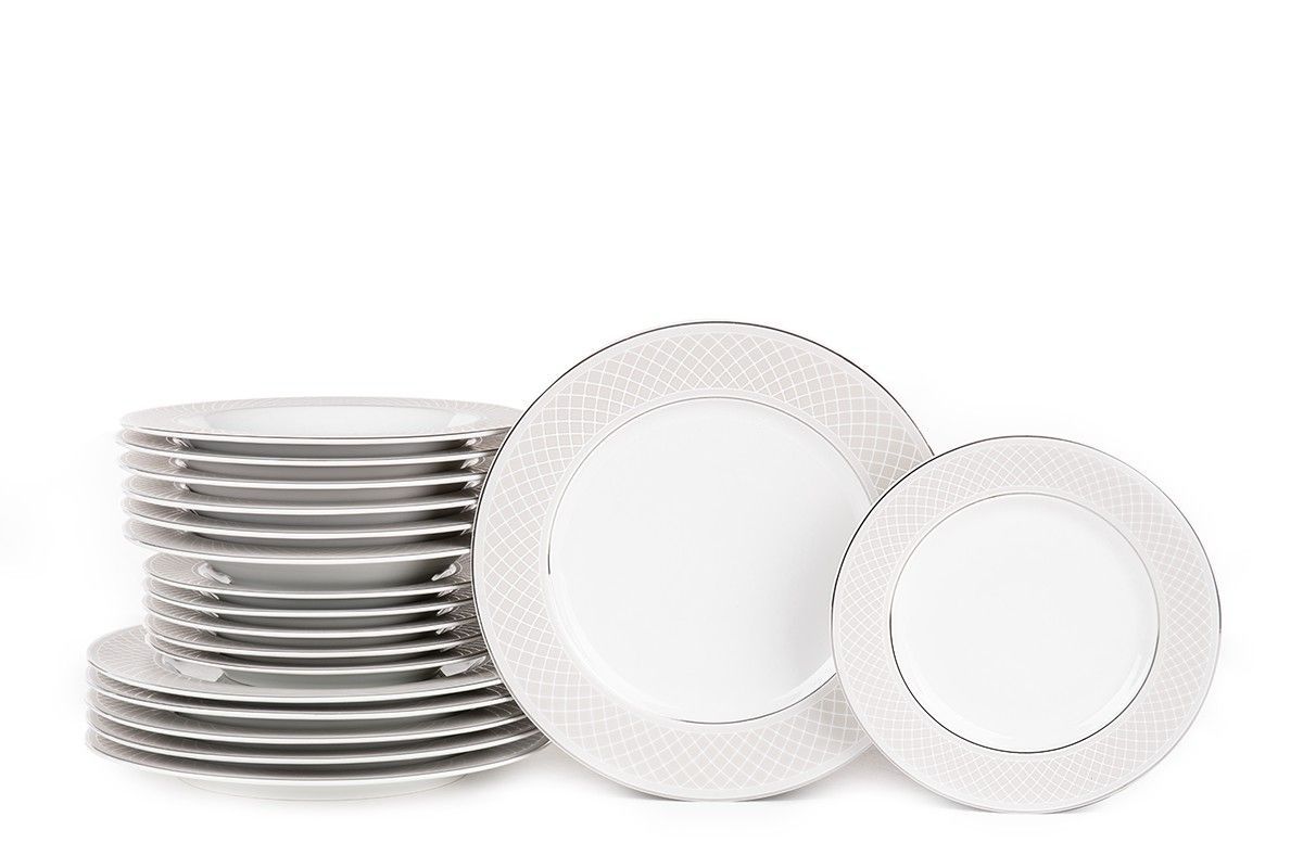 Tafelservice Polnisches Porzellan 18 Elemente Weiß / Platinmuster für 6 Personen