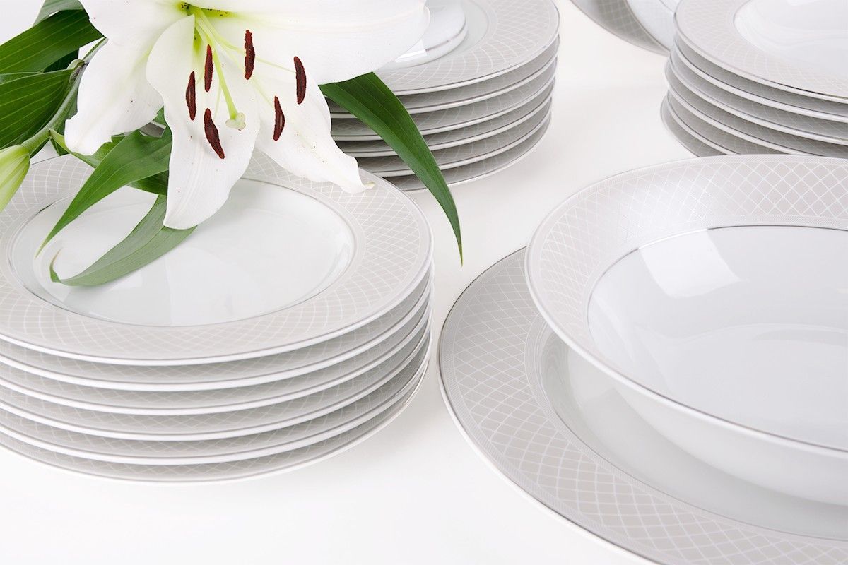 Tafelservice Polnisches Porzellan 18 Elemente Weiß Platinmuster für 6 Personen - MENU Kontakt BEWERTUNGEN Shop besuchen Kostenloser Versand modernes Design Garantie 24 Monate 30 Tage für Rückgabe hohe Qualität Professioneller Service konsimo. SCANIA - collection Abendessenservice für 6 Personen. (18