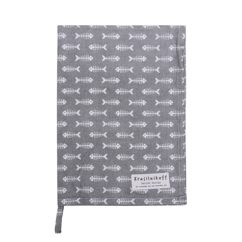 Geschirrtuch FISH Skeleton grey grau weiß Fischgräten Küchentuch von Krasilnikof