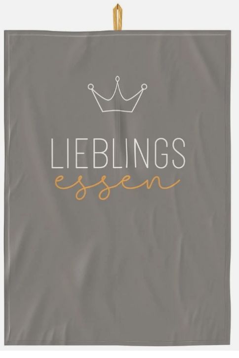 Geschirrtuch Lieblingsessen, Kuechenhandtuch mit Kronen-Design, Grau mit Goldener Schrift