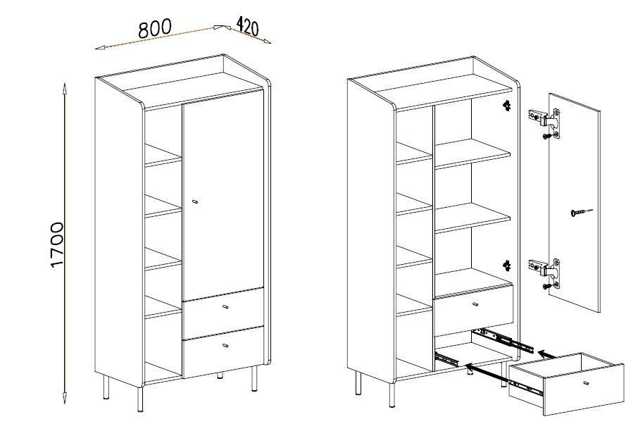 Geschlossenes & offenes Bücherregal Dekoregal Standregal mit Schubladen & Fächer