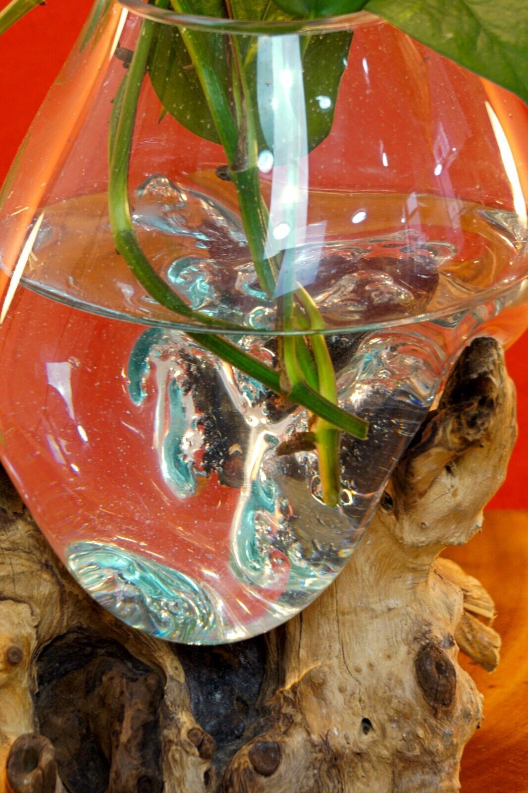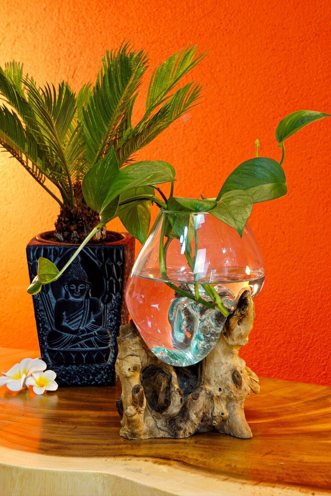 Geschmolzenes Glas auf Wurzelholz Vase Schale Deko Teak Wurzel Pflanzschale