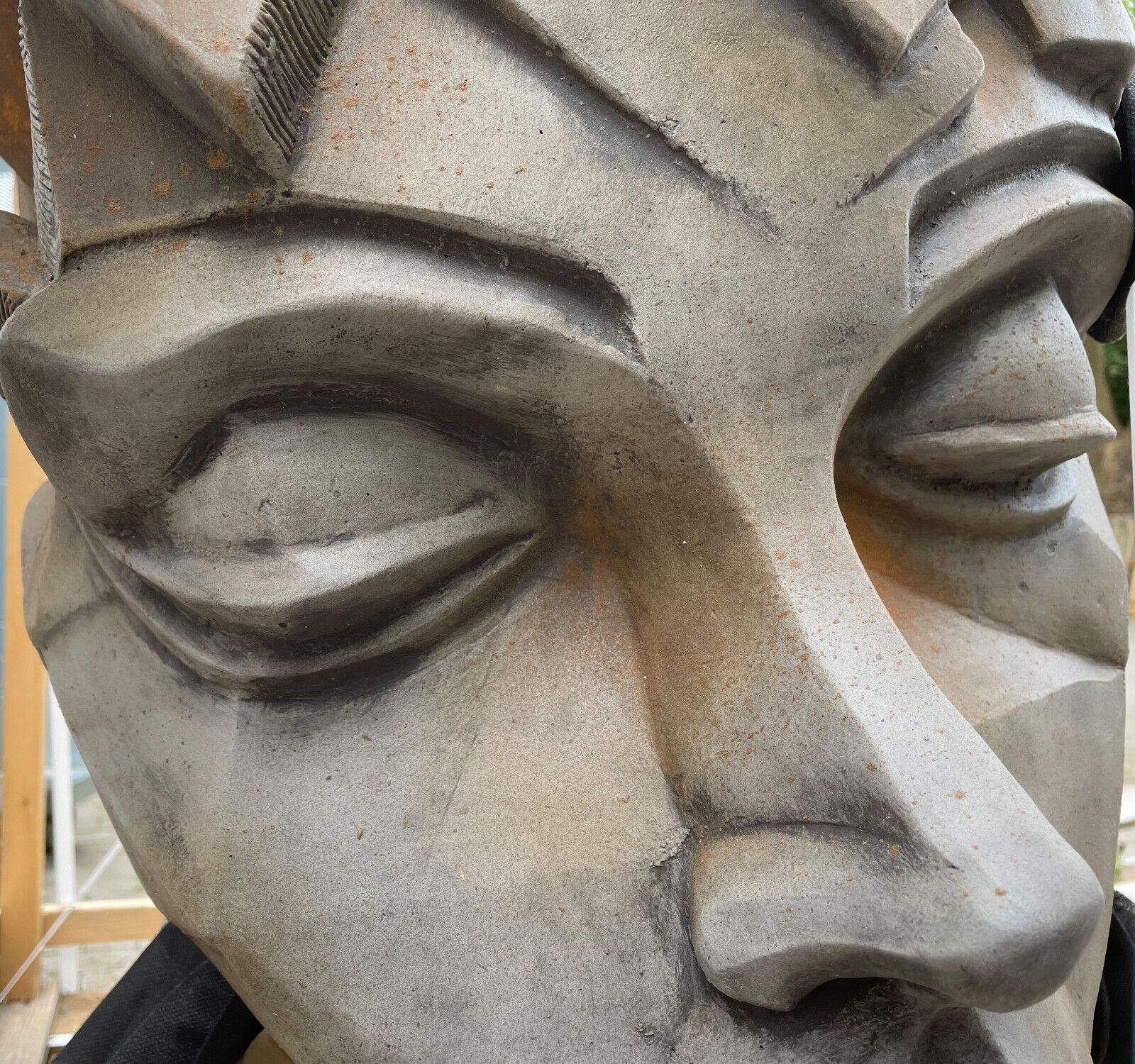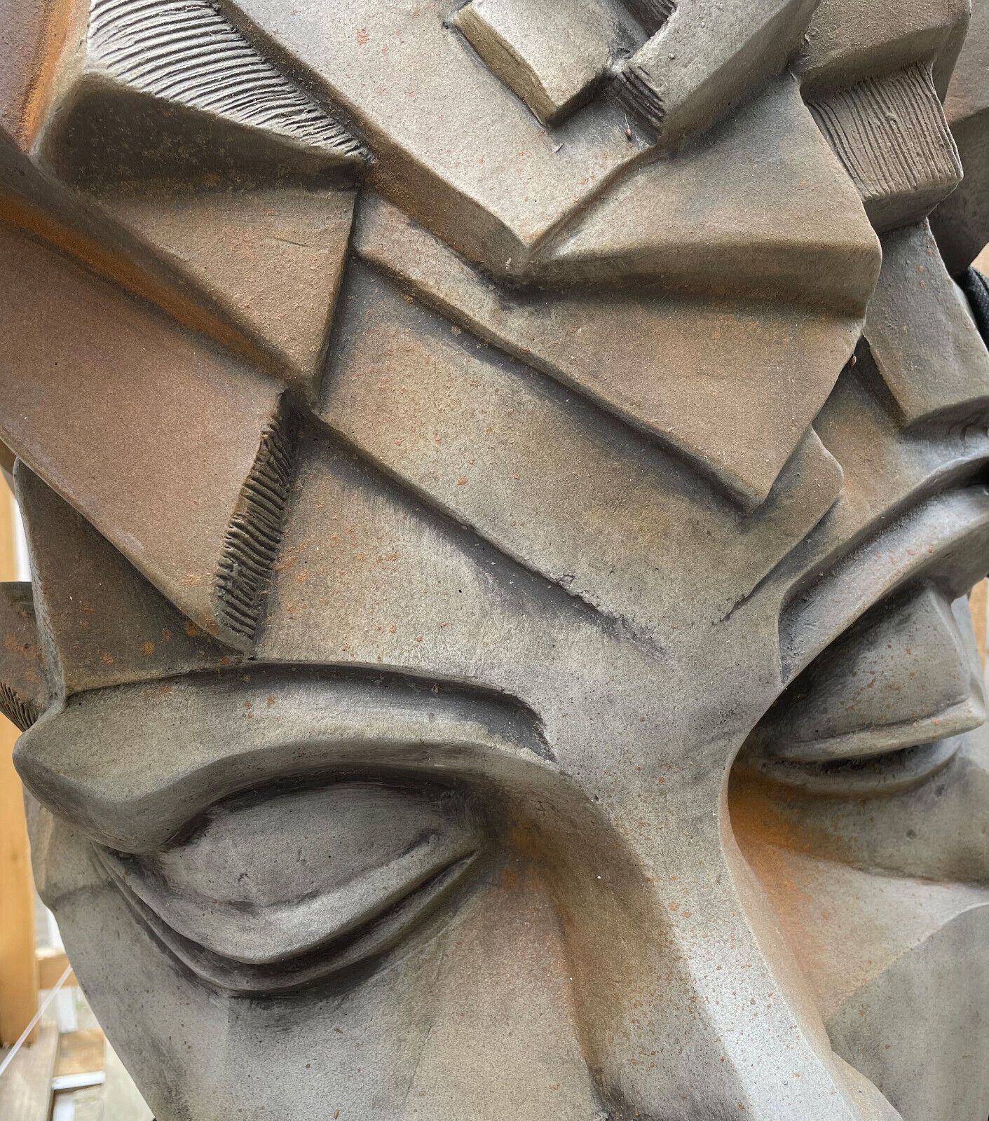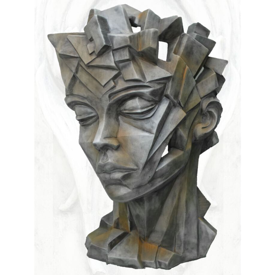 Gesicht Frau Kubis 90cm modern Steinguss Steinfigur Rosteffekt Skulptur