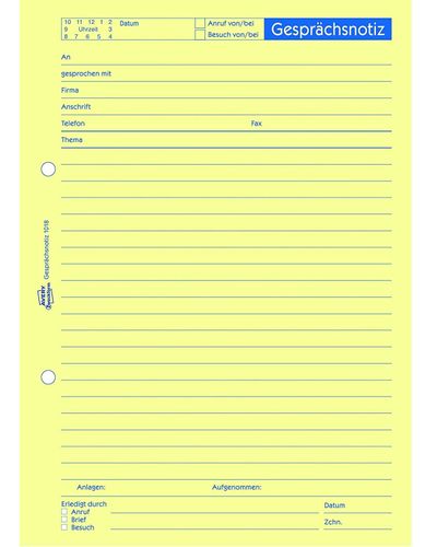 Avery Zweckform Gesprächsnotiz A5 Gelb 50 Blatt
