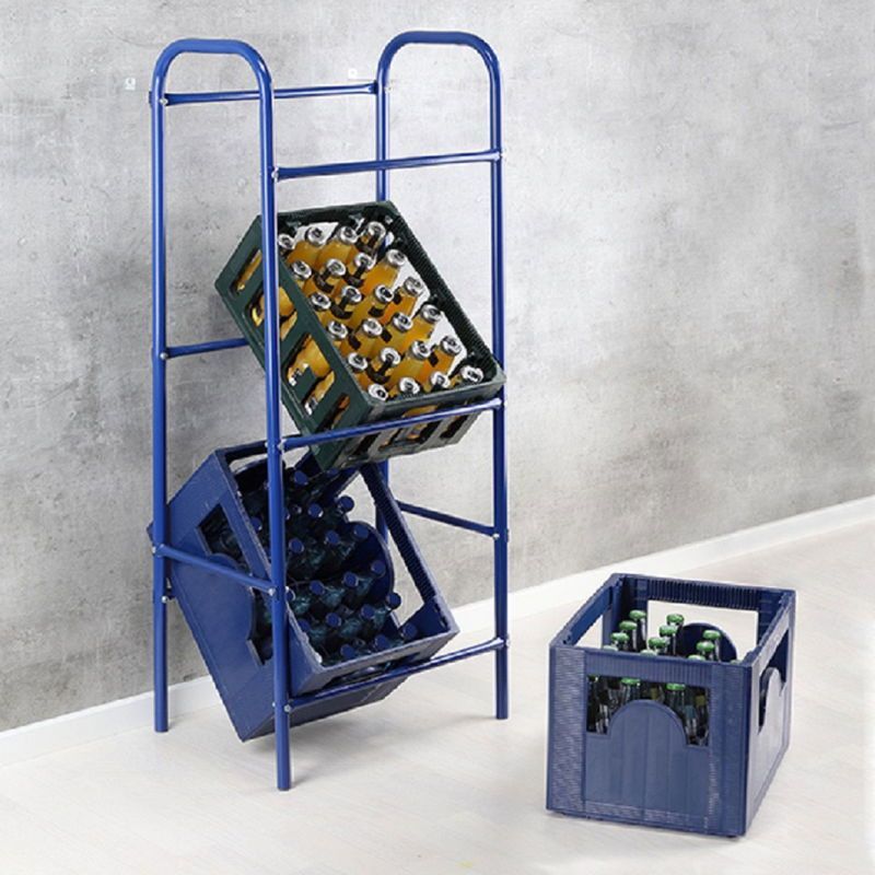 Getränkekistenregal für 3 Kisten, Flaschenregal, Kistenständer, blau : blau