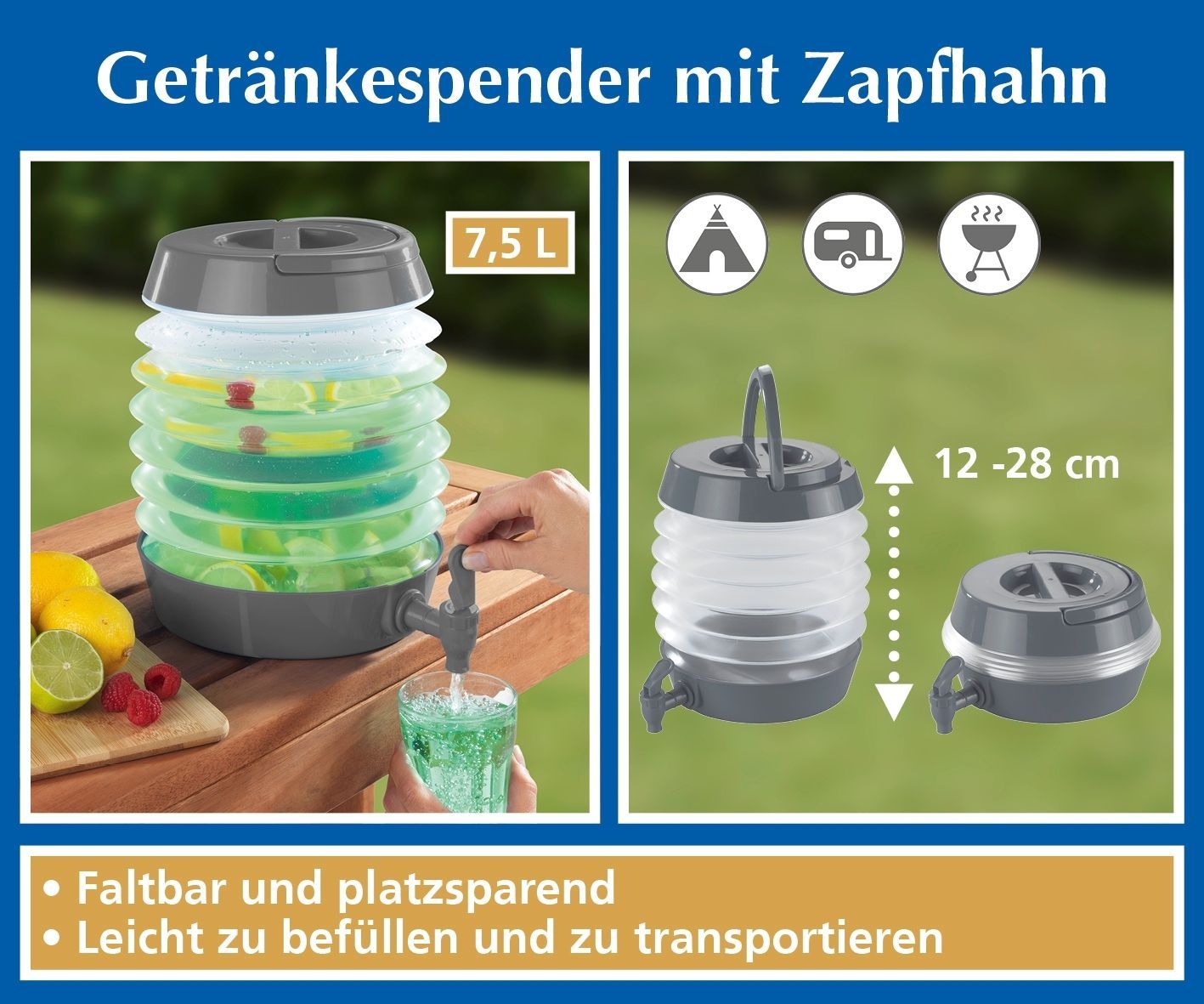Getränkespender mit Zapfhahn Fassungsvermögen ca. 7,5 Liter Höhe bis zu 28 cm