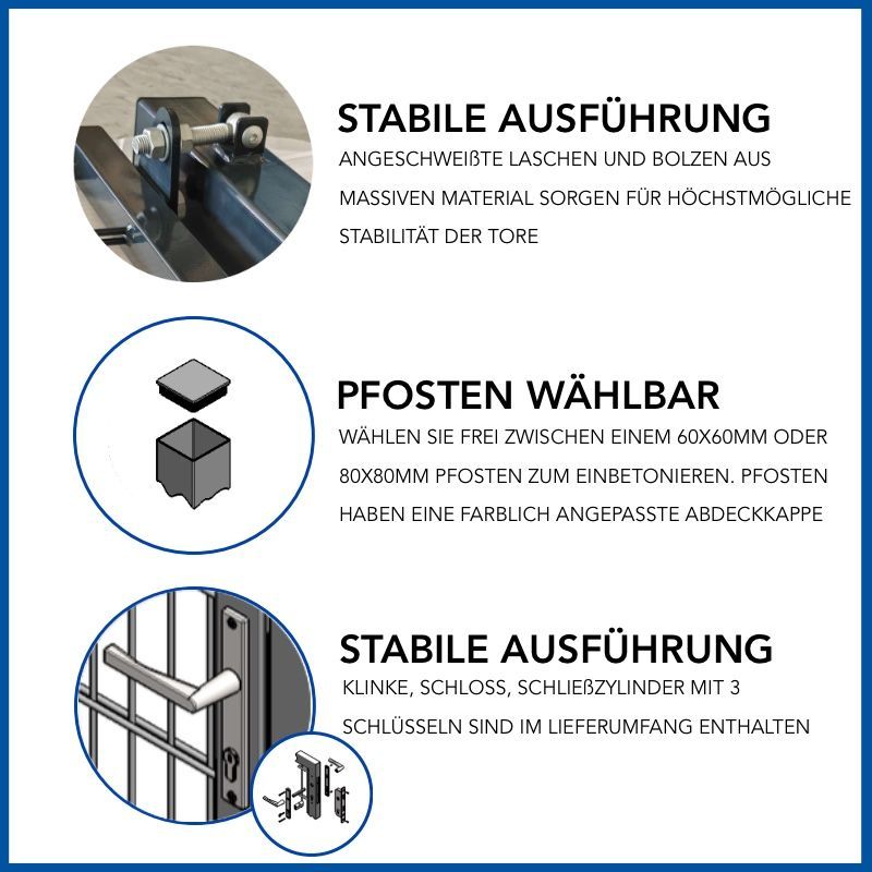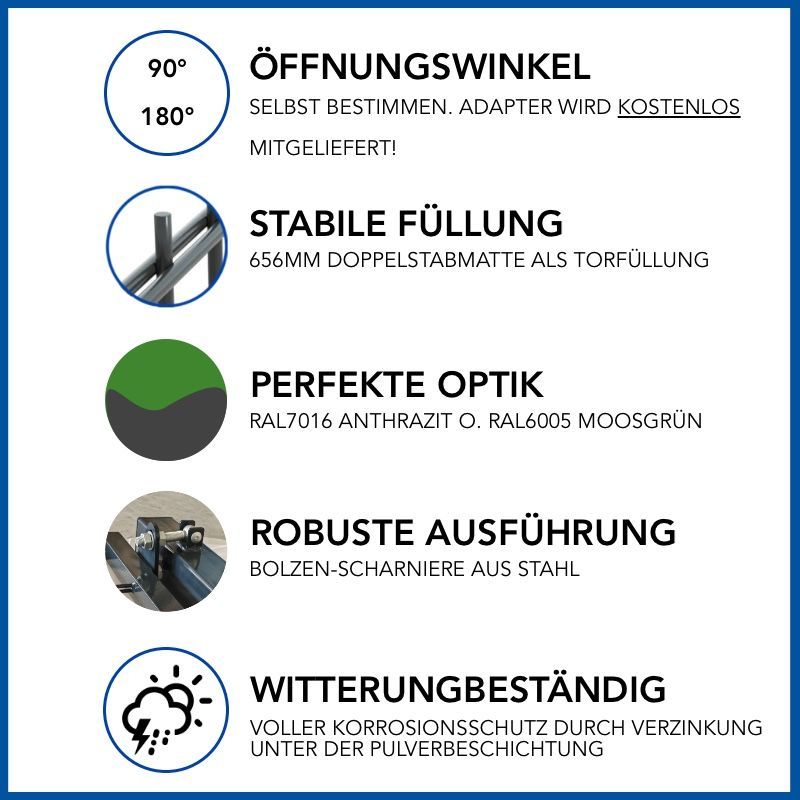 GEWA GEWA Doppelstabmatten Classic Tor Gartentor 1m breit,1 bis 1,8m hoch Einflügeltor