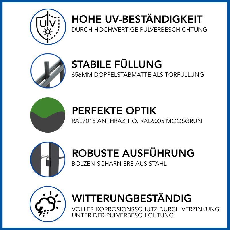GEWA GEWA Doppelstabmatten Tor Gartentor 3m breit / 1 bis 1,8m hoch Zweiflügeltor Drehtor