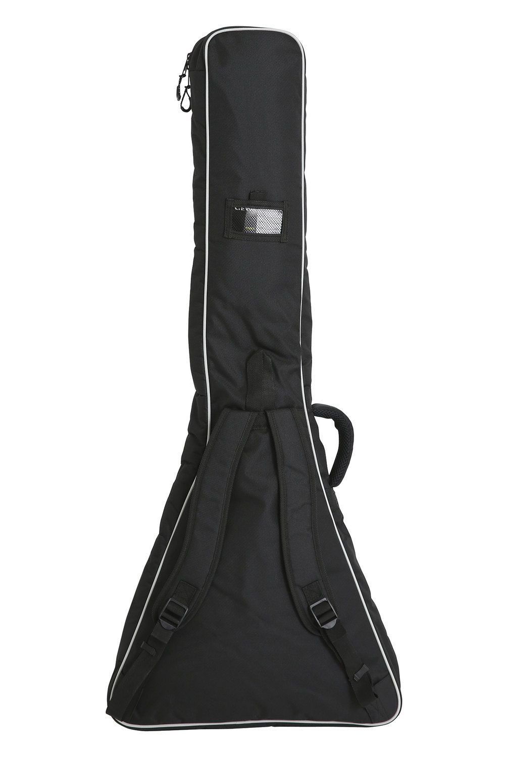 Gewa Gig Bag Economy 12 Line Flying-V schwarz hochwertiges Cordura 600 Denier reissfest und wassergeschützt alle tragenden Teile extra unterlegt und verstärkt 12 mm High-Density Schaumstoffpolsterung Hals- und Korpusbereich mit Zarge fusselfreies Waben-Innenfutter, anthrazit eingenähter Schutz im Me