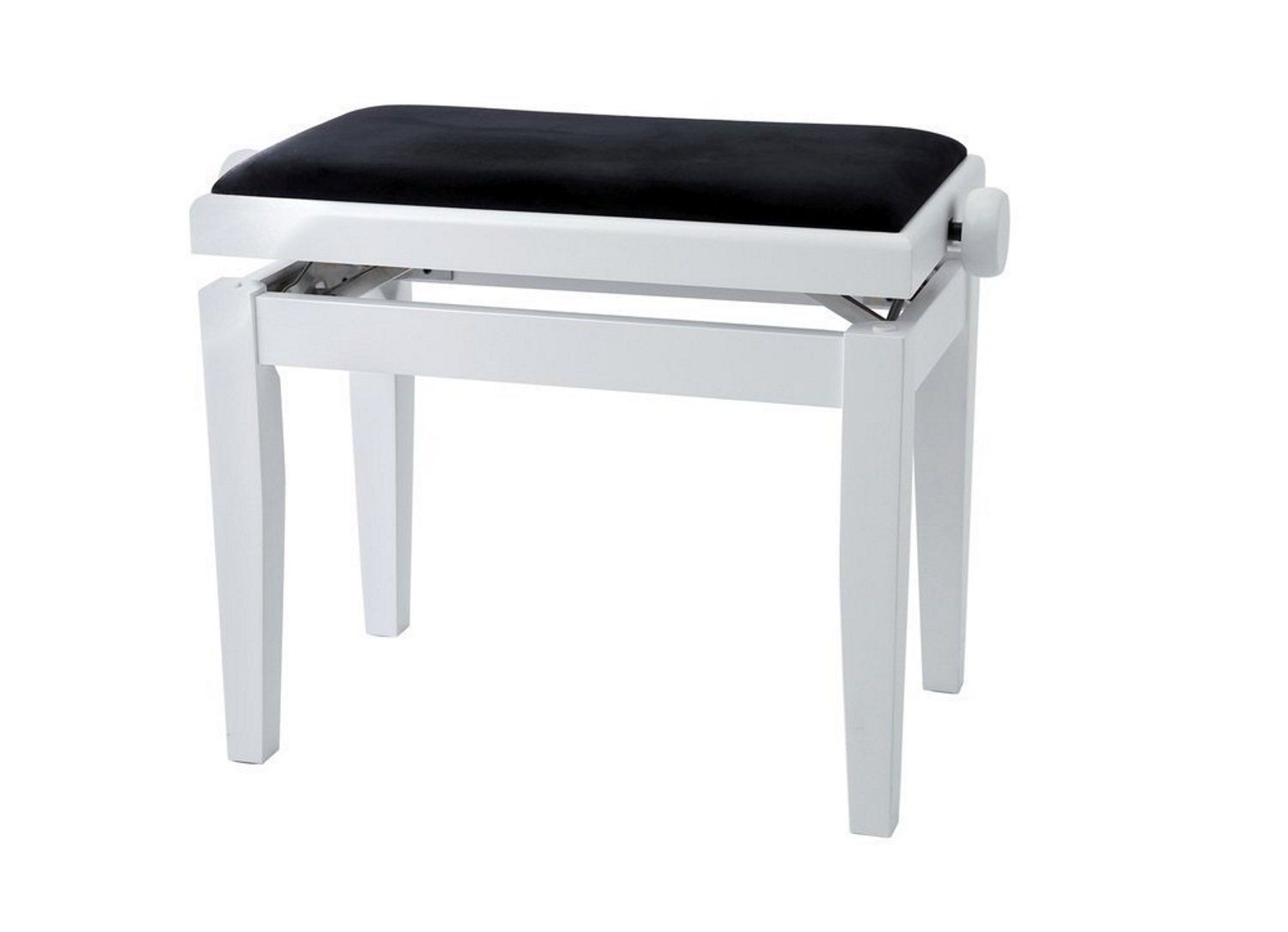 Gewa Klavierbank Deluxe Weiss matt Massivholz Füße durch M10 Schraubdübel hochfest mit Gestell fixiert Bruchlast über 2 Tonnen Velours Sitzbezug schwarz Sitzfläche 52x30 cm Leichtgängige Höhenverstellung über präzise Scherenmechanik Höhe 45-58 cm