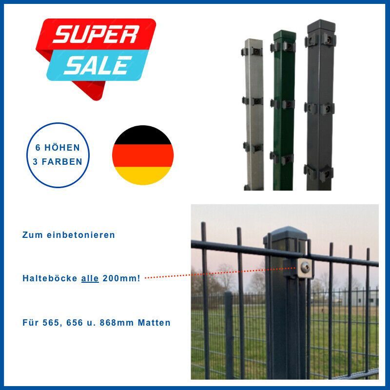 GEWA Pfosten Doppelstabmatten Zaunpfosten Zaunpfahl mit Halter 60x40mm TOP-PREIS