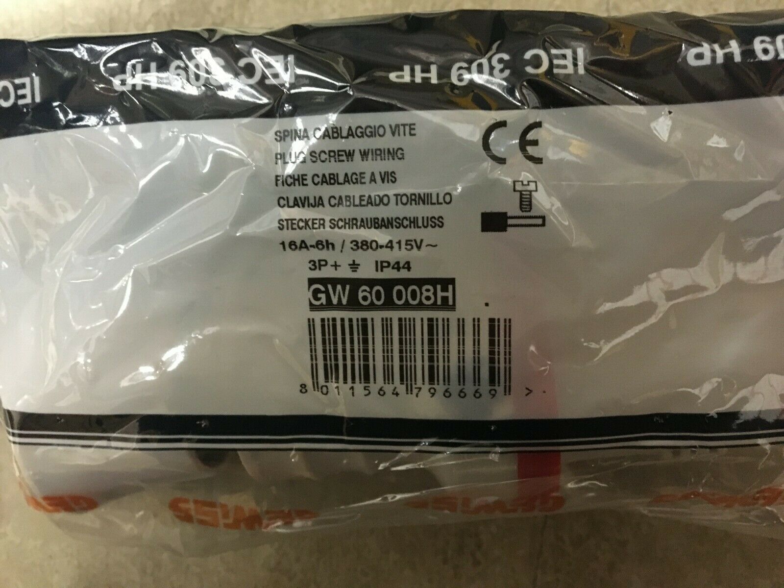 Gewiss Stecker mit Schraubanschluss 3P + T 16A-h/380-415V IP44 GW60008H