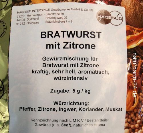 Gewürz für Bratwurst mit Zitrone, 1kg, Gewürz, Gewürze,