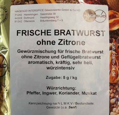 Gewürz für frische Bratwurst ohne Zitrone, 1kg, Gewürz, Gewürze,