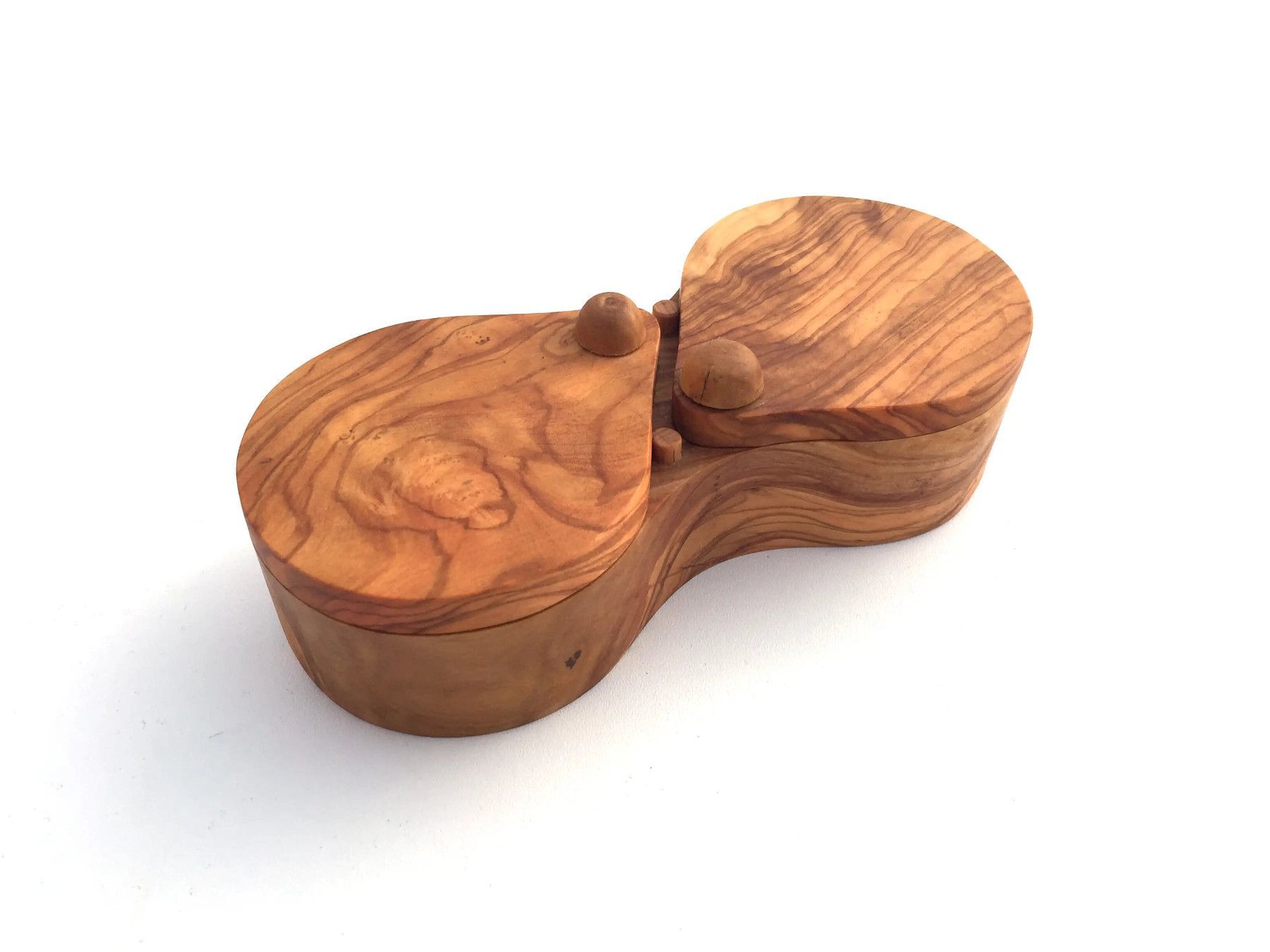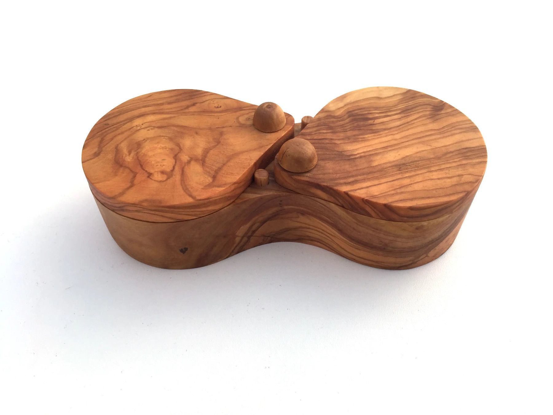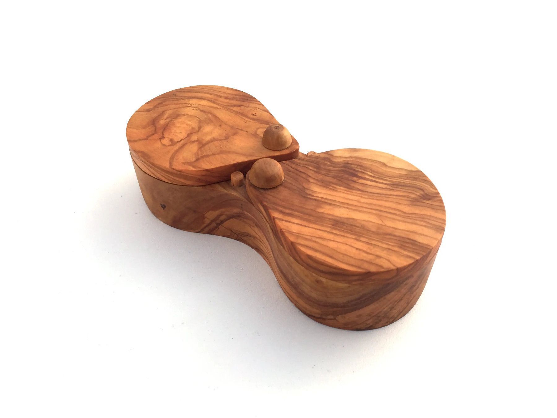 Gewürzdose 2 Fächer, Salz- und Pfefferdose, aus Olivenholz in Handarbeit.