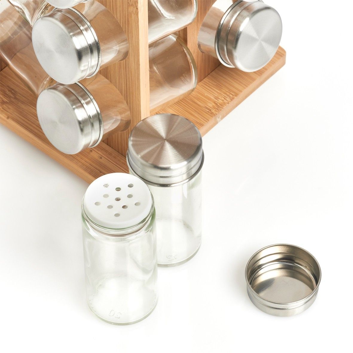 Gewürzrondell m. 16 Gläsern, Bambus/Glas/Edelstahl