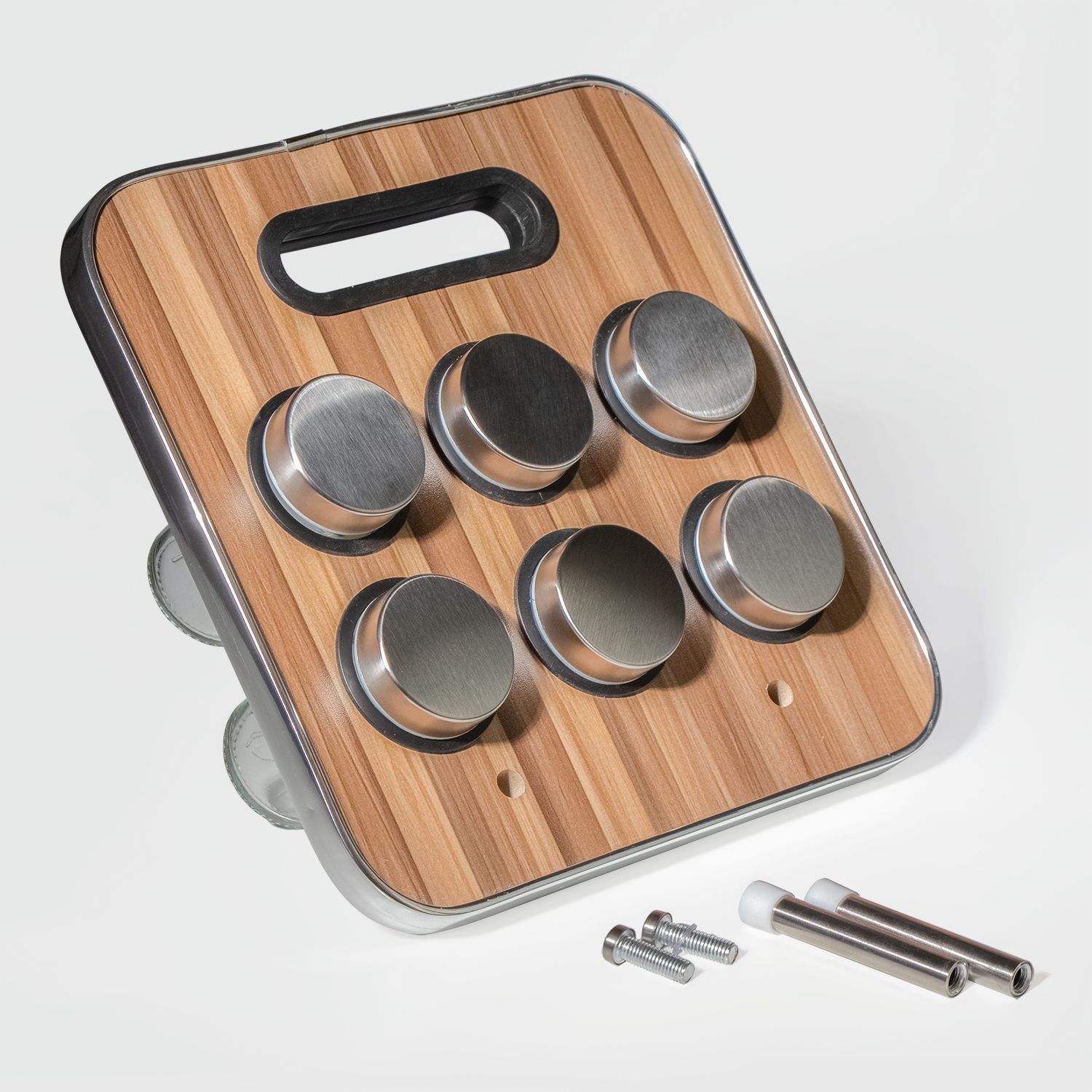Gewürzständer mit 6 Gewürzdosen aus Glas und Edelstahl