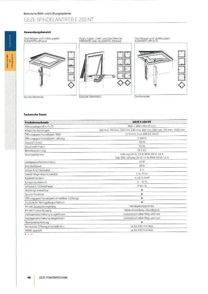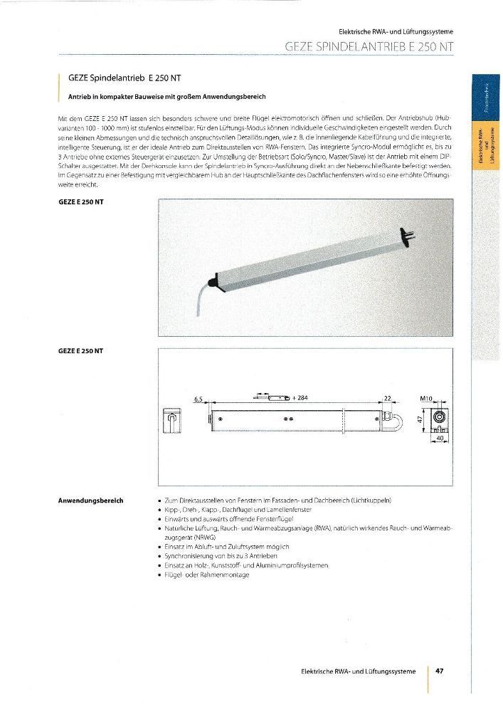GEZE Spindelantrieb E 250 NT 24 Volt EV 1 silber HUB 200 - 500 mm ohne Zubehör