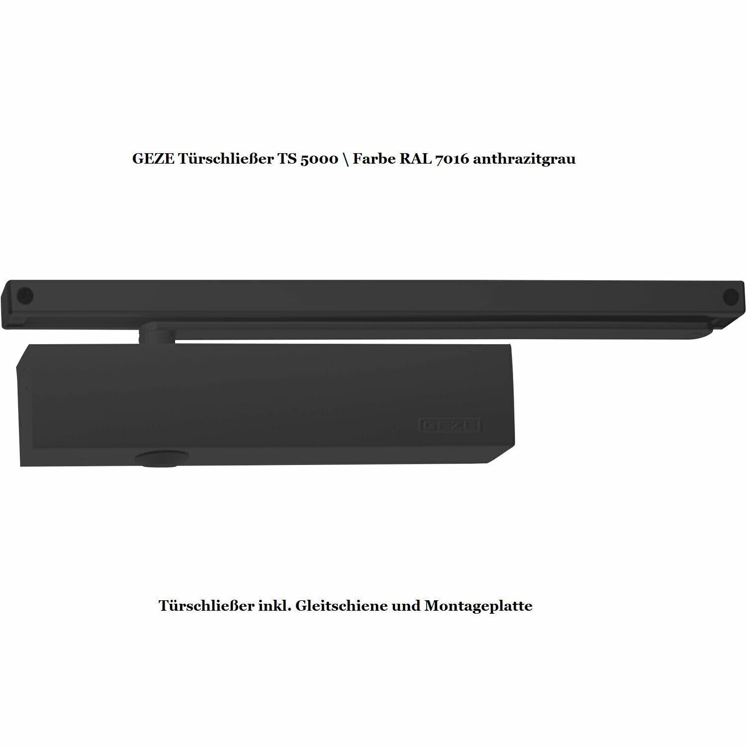 GEZE Türschließer TS 5000 inkl. Gleitschiene & Montageplatte RAL 7016 anthrazit