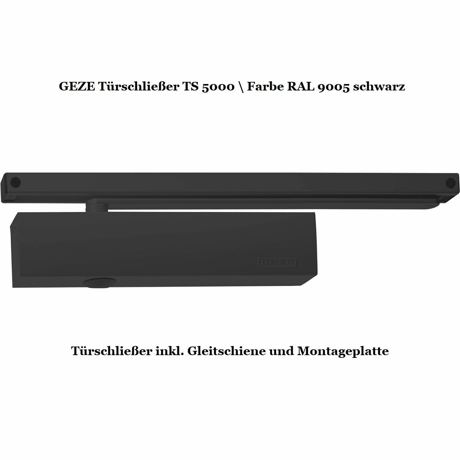 GEZE Türschließer TS 5000 inkl. Gleitschiene & Montageplatte RAL 9005 schwarz